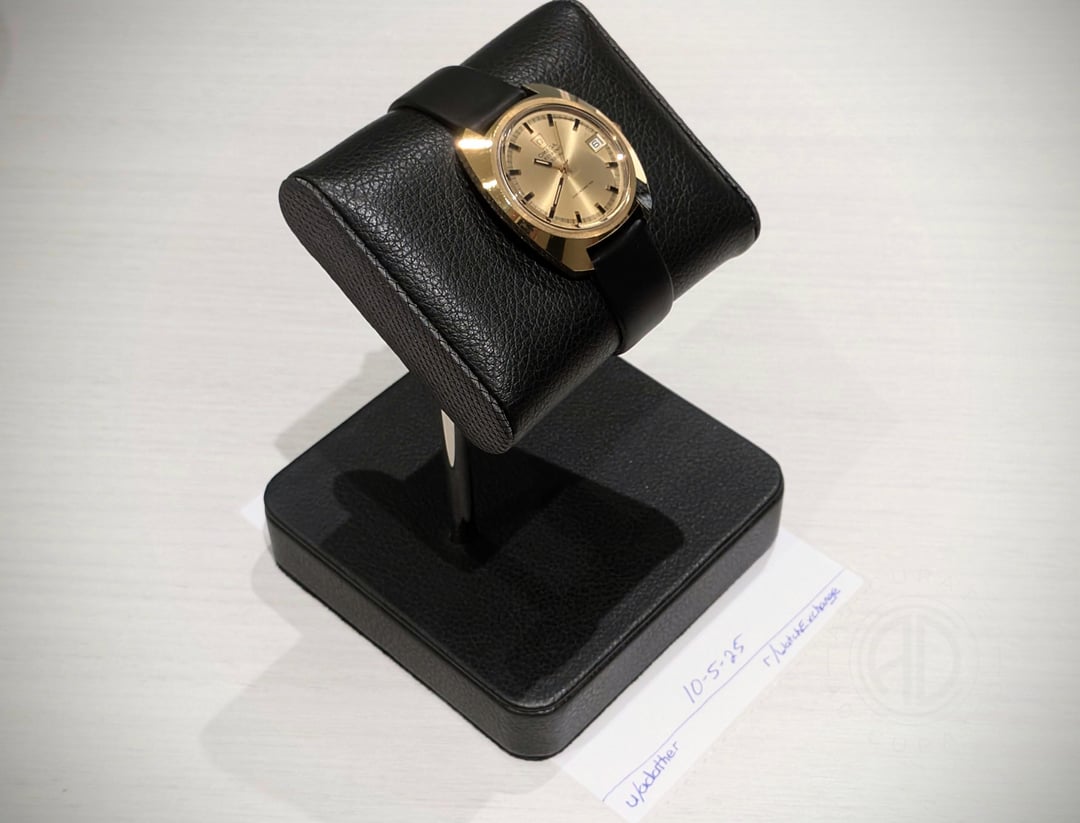Good evening, WatchEx! Third and final for tonight - a gorgeous example of the pinnacle of 70's watchmaking, the Omega Electronic f300hz Chronometer (198.030.) As much as I love a good black watch, I've been on a real gold kick lately - and I gotta say, loving an all-gold, battery powered watch was not on my 2025 bingo card. For years I shunned gold watches, only to actively seek them out over the last year or so. Am I old? The Electronic Omegas are really a marvel - the buttery smooth sweeping second hand, the very light electric whirring of the movement when you hold it up to your ear is truly a unique thing in this hobby. It's a set and forget watch that runs incredibly smooth - so much so that you'll forget it's technically a quartz movement. This variant has a gold dial with really sharp piano-black markers, and the whole thing is in very good condition for its age of ~50 years. It's comfortable, reliable, and just the right amount of flashy - and a size that'll work with any wrist. I'll probably be sad to ship this one off. Quick Specs: - Reference: 198.030 - Gold plated steel case - 39mm Case - 11mm Thin (including top hat crystal) - 19mm Lug Width - 3bar/30m Water Resistance - Movement: Omega Cal.1250 Tuning Fork - Watch only, with new Hirsch Toronto leather and two gold mesh bracelets - Good overall condition, hairlines throughout case, faint marks on crystal (a polish would have this looking new - no patina visible) - Caseback engraved for one C.T. Hall, commemorating 30 years of "Cities Service" - no idea who that is or what city, but cool to know someone worked their ass off for 30 years to be awarded this Omega. [Retail Link, More Info](https://share.google/hRgDtZm2D0kAwyd8o) [Timestamp](https://imgur.com/a/k7CjzT8) [Album](https://imgur.com/a/ZMovii1) I'm asking for a loosely negotiable $599. Price is shipped/insured within the US (UPS/FedEx 2-Day, international shipping available at buyer's expense (typically not more than $50.) Zelle preferred, PP F&F also accepted. Tons of refs on here, hundreds more on various reputable watch groups on Facebook. Sale heavily preferred, trades considered around the $800 mark, or trade + cash going either way. Thanks for looking - Cheers!