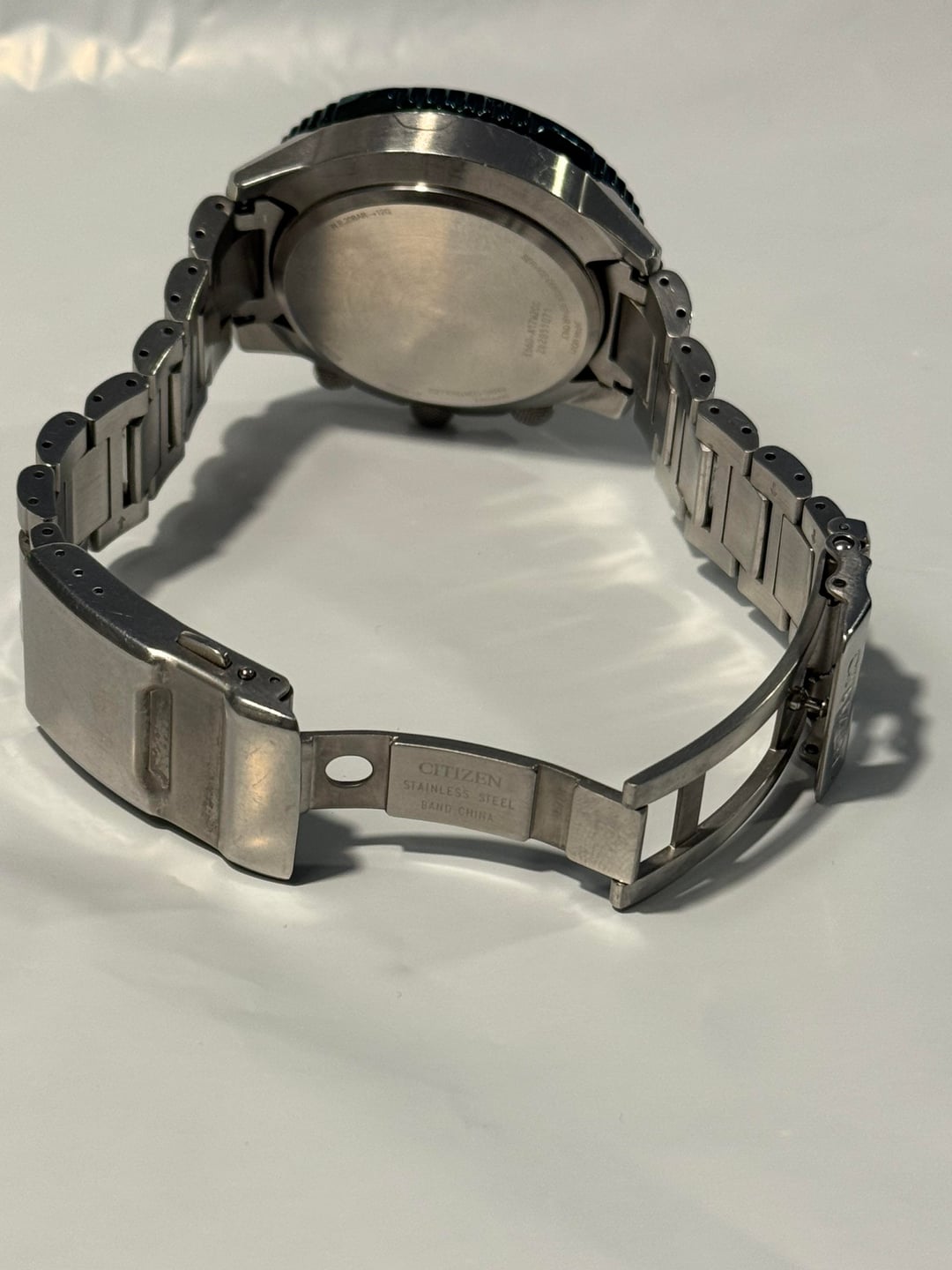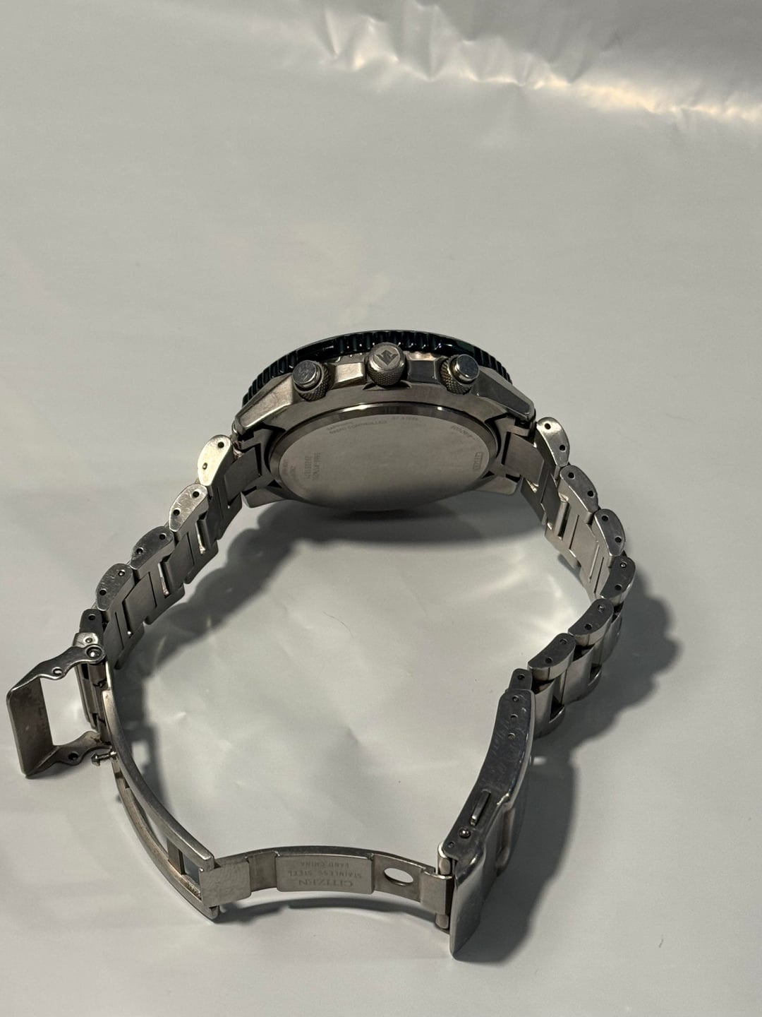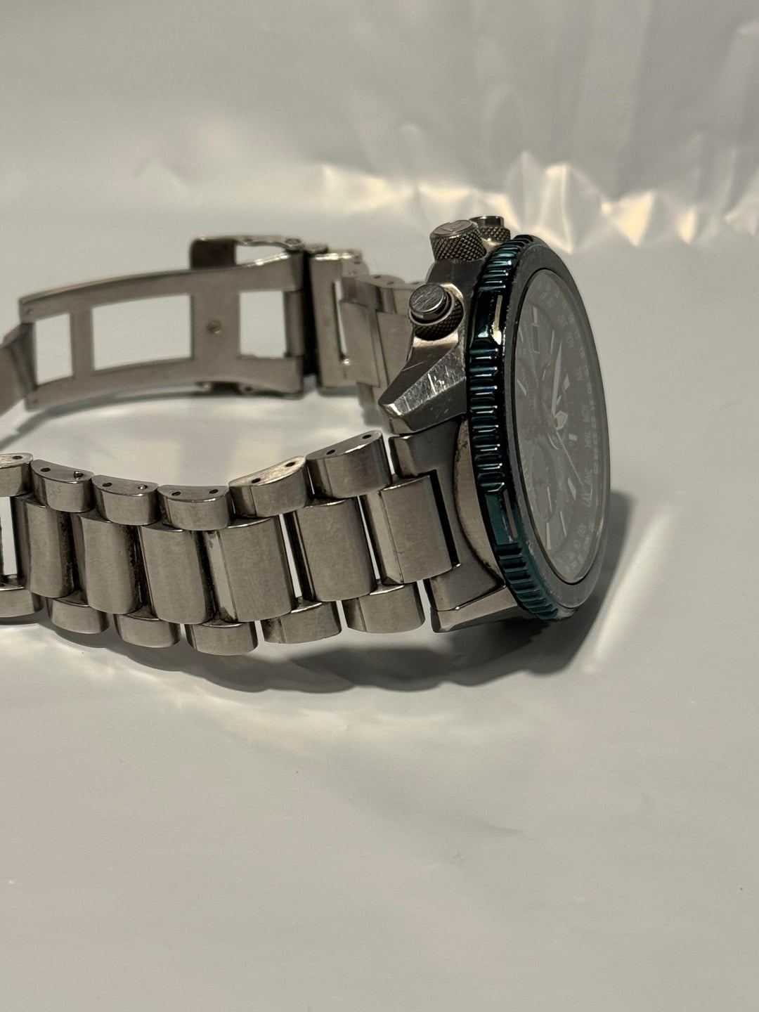 Timestamp: https://imgur.com/a/x22kejs Disclaimer: My first post here and I’m hoping to become a regular as I’m downsizing my collection. Any pointers welcome! $385 OBO shipped CONUS Up for sale is my Citizen CB5004-59W Air A-T Eco-Drive Chronograph. Runs flawlessly and keeps time perfectly thanks to its atomic synchronization — no battery ever needed since it’s powered by light. 46mm stainless steel case, green dial with luminous hands and markers, and a sapphire crystal that’s completely clean and scratch-free. The bezel and bracelet show some normal wear, bezel has small scratches and dings (did my best to photograph them). The dial and crystal are pristine. Features the E660 movement with atomic timekeeping across 24 time zones, 1-second chronograph (up to 60 minutes), perpetual calendar, 12/24-hour time, alarm, power reserve indicator, and day/date display. Water resistant to 200m. Stainless steel bracelet with a push-button fold-over clasp.