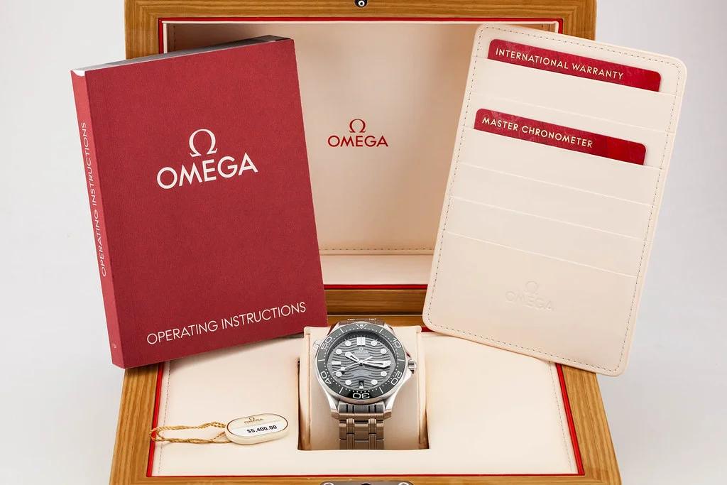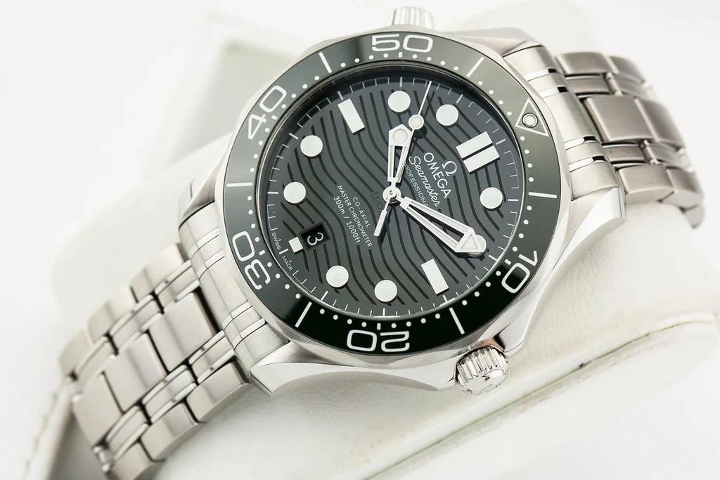 Up for sale is a brand new Omega Seamaster 300 Green Wave Dial on Bracelet, reference # 210.30.42.20.10.001. It comes complete with all boxes, papers, booklets, hang tag and Omega Warranty Card dated August 2025.
