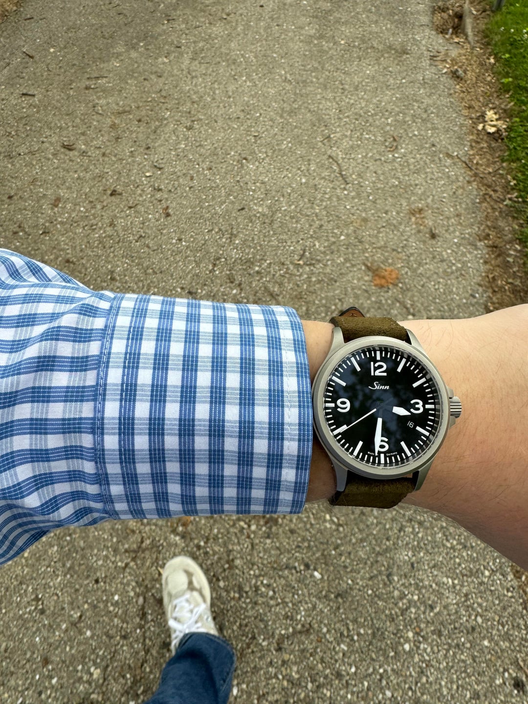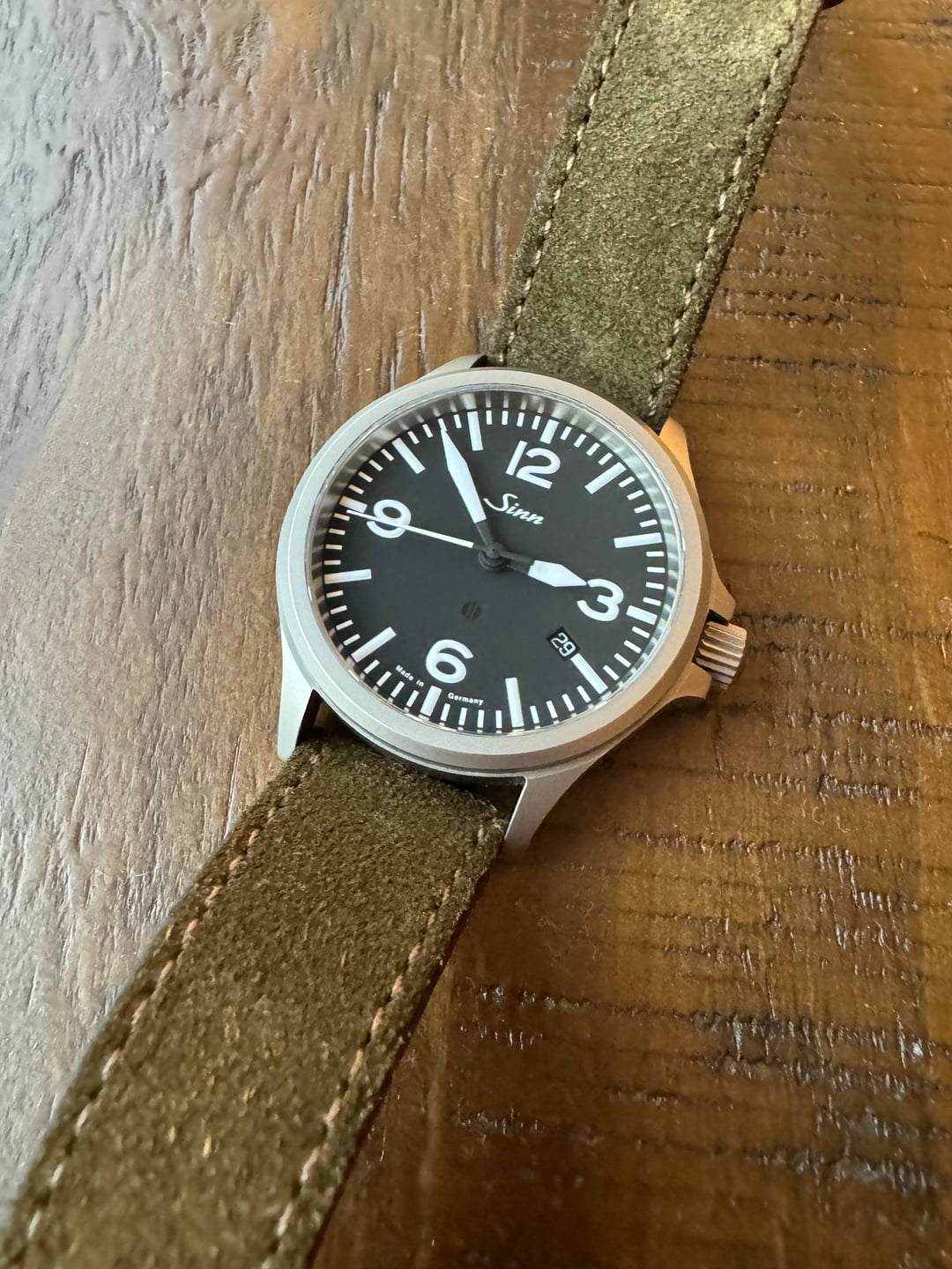 Listing this clean 40mm Sinn 856 with all the Sinn tech- Tegimented coating, gas filled, moisture capsule, antimagnetic, double AR coating, etc. The timekeeping is excellent, I observe it to be within 3 spd. The AR on the crystal is completely devoid of any marks. Clean case as well. I have the box but no papers. Comes with this handmade German suede strap with the OEM Sinn buckle. Also including the pictured black leather strap in the style of the original one it came on. CONUS only. Trades may be heard out but would prefer to sell this one. Asking $950 shipped, pretty firm.