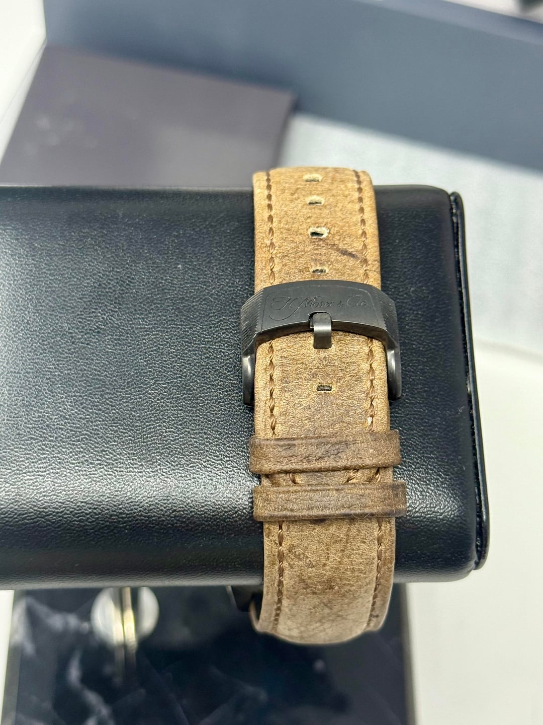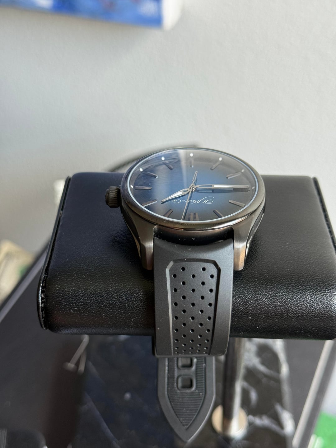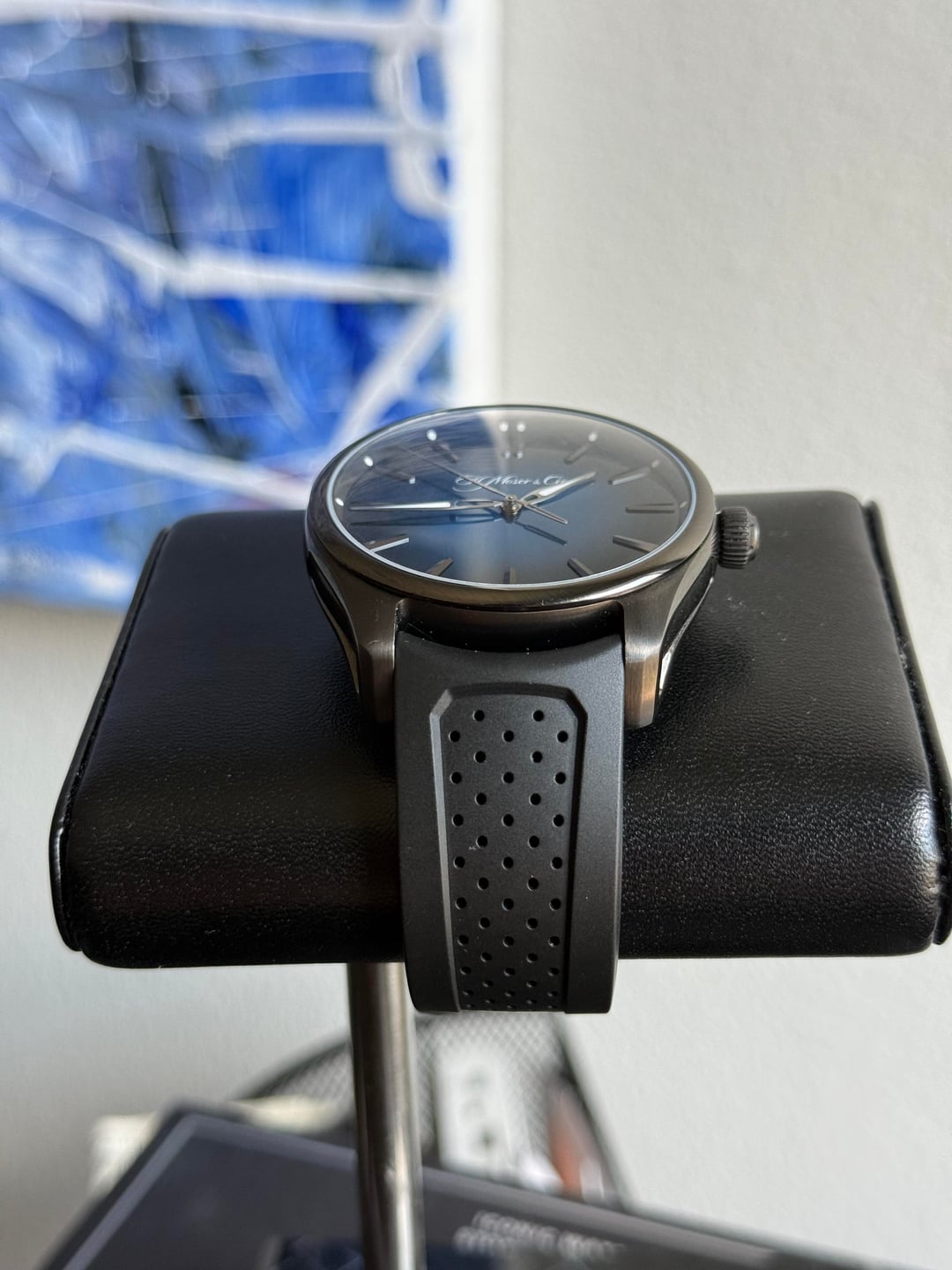 Full Set – Box & papers dated 2024 Includes both OEM straps: black rubber + black leather Sapphire crystal with exhibition caseback 120 m water resistance – sporty everyday versatility Iconic fumé dial with insane sunburst gradient Polished leaf hands + applied indices A true independent luxury piece you don’t see often Condition: • Small scuff on bezel • Light scuff on lug (Minor marks only noticeable up close) Crystal perfect – running strong Price: $11,250 + label (insured overnight U.S. shipping) Payment: Bank wire or Zelle preferred Trades: No trades Tax: No sales tax outside Texas Location: Houston, TX – FaceTime available About me: USAF veteran-owned business | Space City Timepieces 5-Star Google Reviews | Instagram @spacecitytimepieces DM for purchase, additional photos, or video. First firm “PM sent” gets priority.