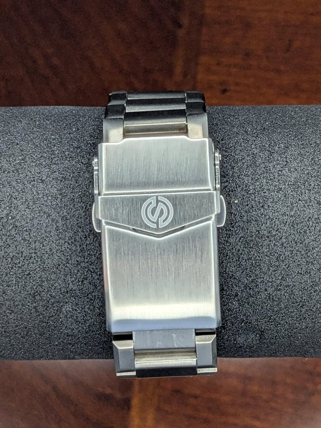 Got this awesome Signum Cuda right here on WatchExchange, and never wore it. Neither did the last guy, who bought it in April of this year. As pristine a watch as you are going to find. SPECS: Lume: SuperLuminova dial Day Sky dial. The date wheel is also lumed. Case: 42.5mm Gr. 2 Titanium case with hardness and scratch resistant coating, case-back is steel Bracelet: Gr. 2 Titanium (not coated) with screwed links and solid Titanium end link, quick release pins for easy bracelet removal. Clasp: Solid milled Stainless Steel clasp with 5 mini adjustment holes with scratch resistant coating Lug To Lug - 49.9mm Lug Width - 22mm Case Thickness - 13.4mm Case Material: Gr.2 Titanium, case-back is steel Movement: Automatic NH34 GMT (custom Lume date disc at 6) Crystal: Domed Sapphire Crystal Hands: BGW9 Blue SuperLuminova Hour/Minute hands and markers Bezel: Ceramic Bezel unidirectional 120 click with BGW9 Blue Lume Water Resistance: 20ATM/200m Looking for $300 shipped! Based in CONUS - reach out with any questions!