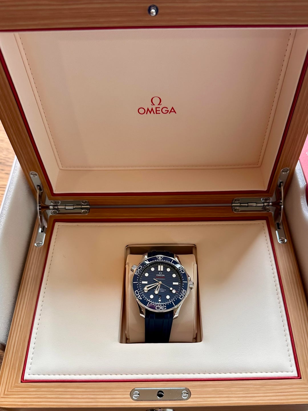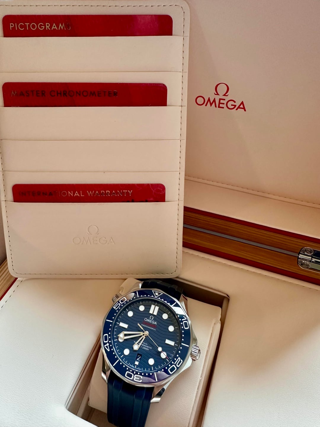Hi everyone, Offering for sale this lovely Omega Seamaster Pro Diver 300M - reference 210.32.42.20.03.001. The wear time on this is about an hour. I bought it in March and realized it’s just not what I wanted and want it to end up with someone who’ll appreciate it more than me. Full set including exterior box, case, manuals, hang tag, original case back sticker. Warranty began on 3/27/25. Shipping from Minnesota to anywhere in the continental US. Asking for $5000 + insured shipping. Prefer Zelle or Venmo. Will happily show off via FaceTime if desired.
