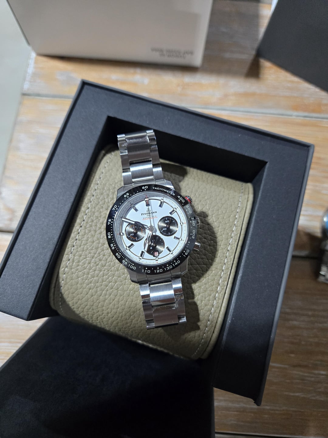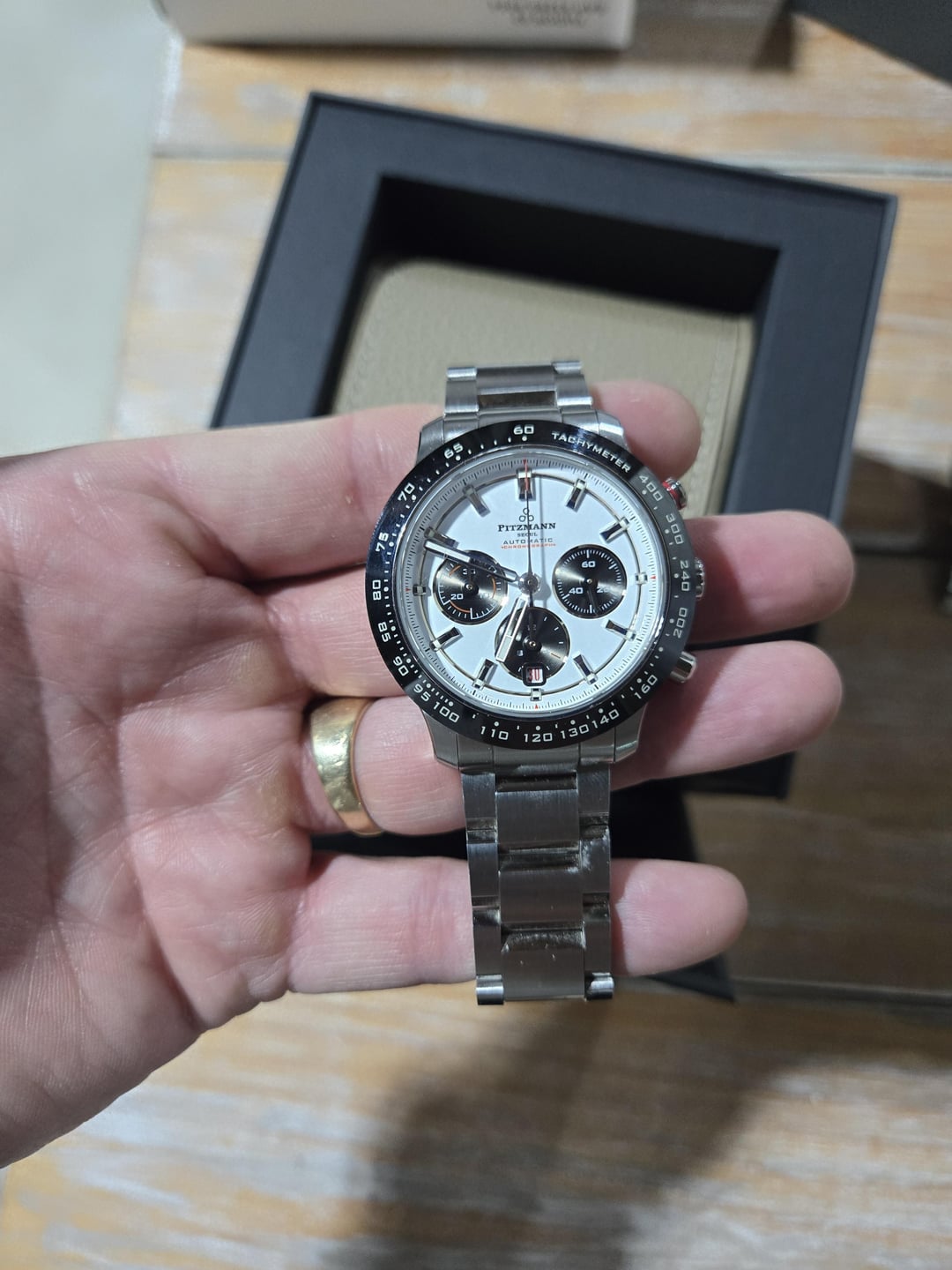 Pitzmann III Panda. Picked this up not too long ago but trying to thin the herd. Great watch that punches well above its price point, especially with the Seiko 8R48 (NE88) Chrono that is found in watches that cost twice as much. Diameter - 40mm (41mm with the Bezel) Lug to Lug - 47.5mm Thickness - 13.25mm Water Resistance - 50m Glass - Sapphire, double-sided AR coating Movement - SEIKO Caliber 8R48 (NE88) Power Reserve - 45hrs Price - $900 Pictures – [https://imgur.com/a/panda-yyWVED3](https://imgur.com/a/panda-yyWVED3) Timestamp - [https://imgur.com/3k5Sw0T](https://imgur.com/3k5Sw0T)