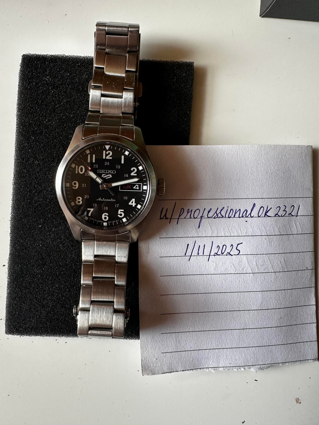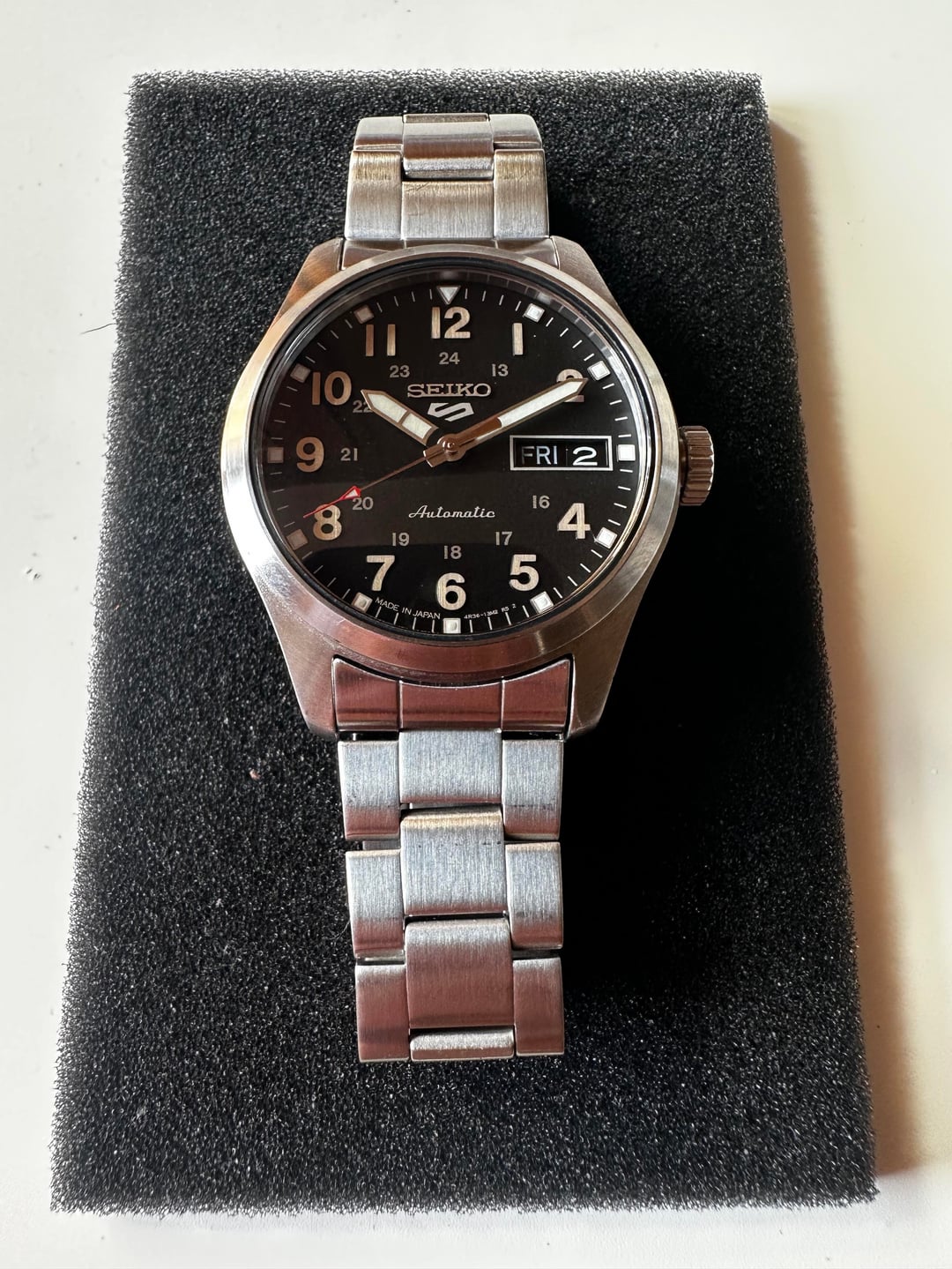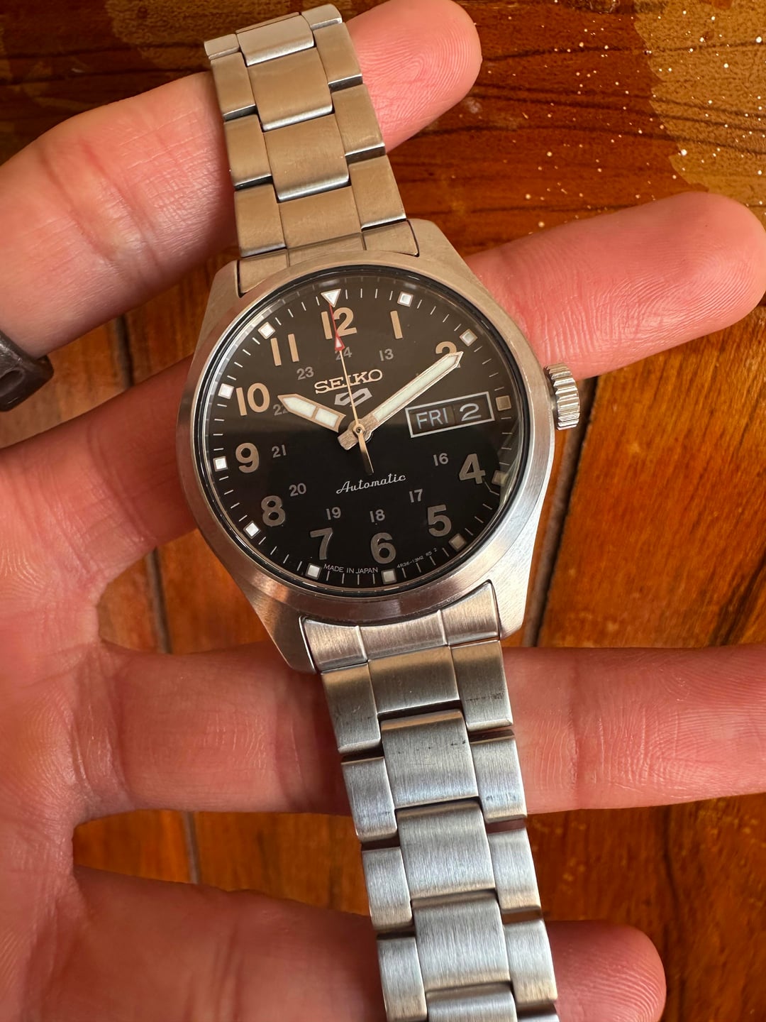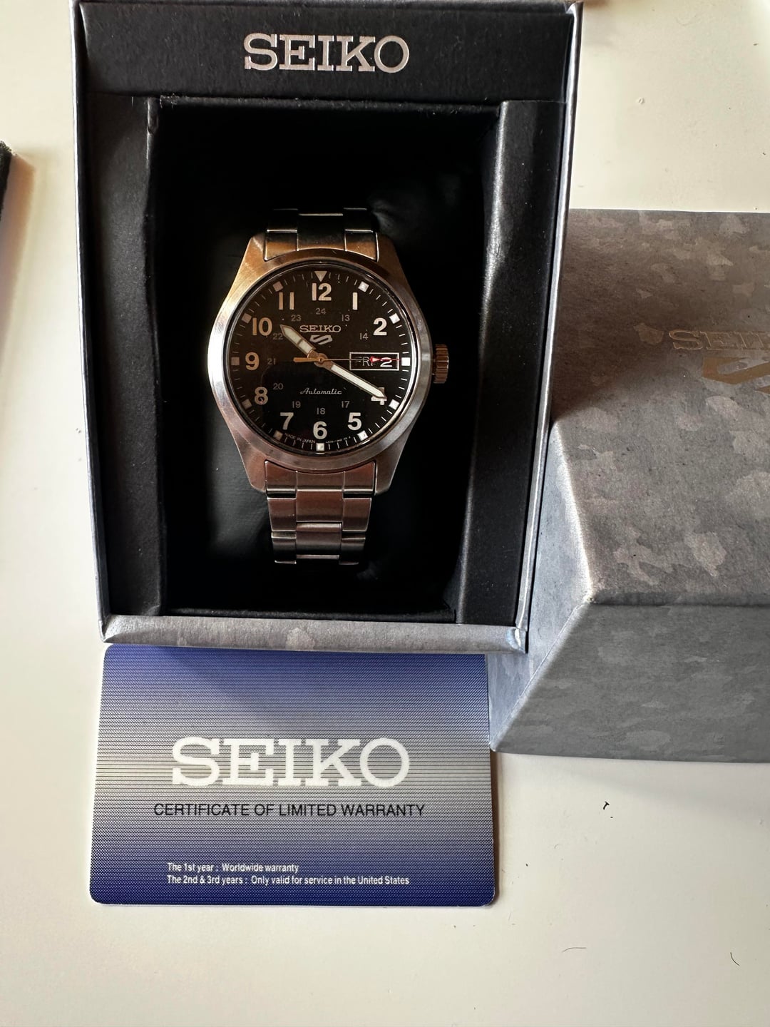 p for sale is a beautiful and versatile field watch from seiko - the SRPJ81. Seiko makes some solid fiele watches and this one continues it's heritage. The watch measures 36mm in diameter and 44mm lug to lug with a lug width of 18mm. Powering the watch is the automatic Seiko 4r36 movement with a power reserve of 41 hours and a beat rate or 21600vph. The watch is also rated for 100m of water resistance for a worry free wearing experience! The watch comes as a full kit with box, papers and full set of links. Asking $175 shipped. Willing to meetup in NYC/Newark/Jersey city and Harrison. Prefer payment in cash/zelle/paypal F&F. I have two successful transactions here and willing to accept payment after delivery from well established members. Please feel free to message if you're interested. Thanks for looking!