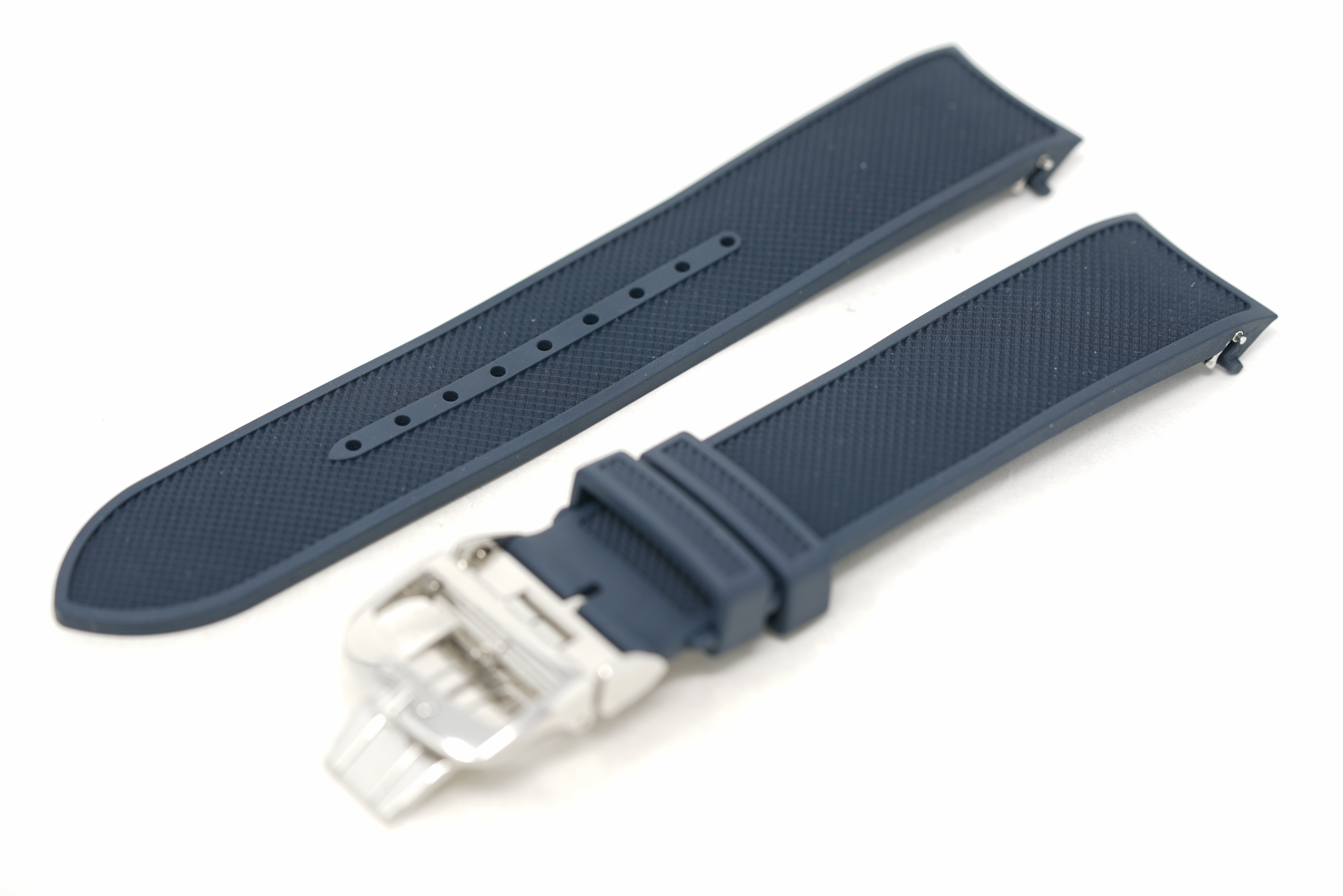 Strap/Bracelet: Stainless Steel Bracelet & Blue Textile Rubber Strap