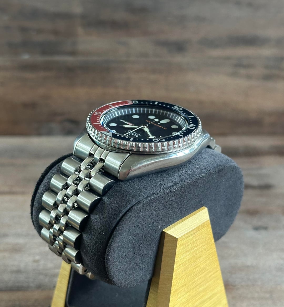Up for grabs is a beautiful Seiko SKX175, the North American variant of the SKX009. This is a clean example showing normal signs of use but no signs of abuse. The watch is all original and has no aftermarket parts whatsoever. The crystal is flawless and the original bezel has developed a slight fade that looks fantastic on these Pepsi Divers. According to the original owner, the watch was serviced by his local watchmaker prior to my ownership. While I don’t have documentation of the service, it has performed flawlessly for me averaging around +7 spd (your results may vary) with zero issue to note. The crown screws down smoothly, the bezel has a crisp 120-click action, and alignment appears spot on. The watch comes mounted on its original Seiko Jubilee bracelet, which comfortably fits a ~7.25” wrist and possibly up to 7.5”. No extra links included, watch and bracelet only. Price: $260 shipped (U.S. only) Not interested in trades or offers at this time.