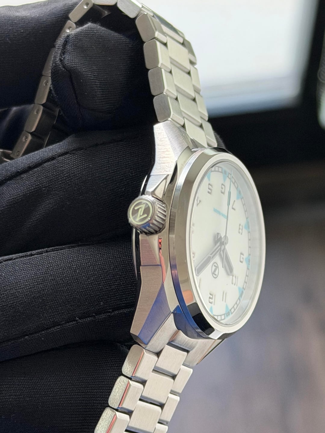 Zelos Swordfish Field 38 Frost ❄️ Absolutely minty condition! Comes with 3-watch roll **$325** / Zelle, Venmo, or WU accepted. Timestamp: https://imgur.com/a/NYddHtR I have **tons** of references on multiple platforms including WatchExchange. We also are a 5-STAR rated business on Google!