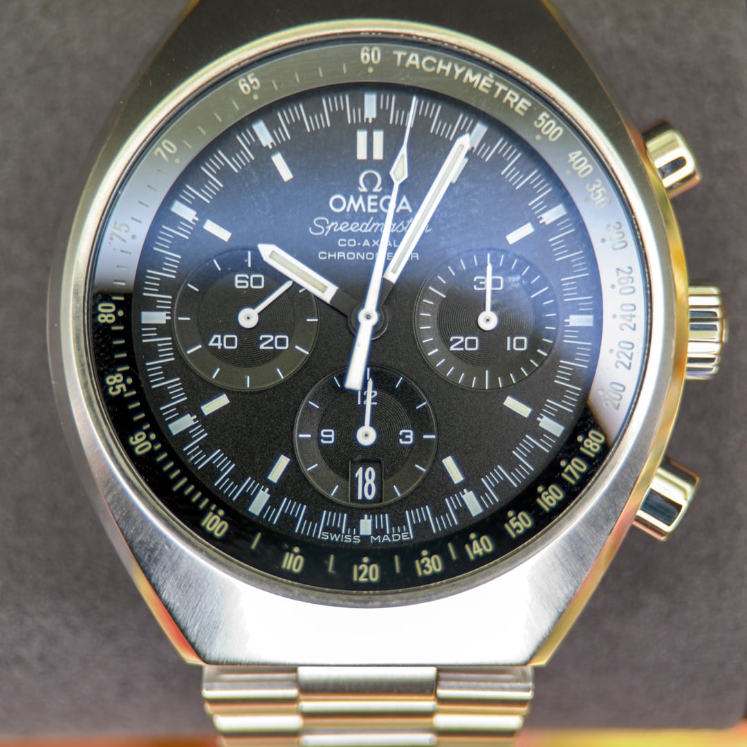 **This OMEGA Speedmaster Mark II is a wonderfully funky 1970s-inspired chronograph!** * **Vintage charm, modern execution** – Launched in 2014, it faithfully honors the original '70s aesthetic while incorporating contemporary reliability and finishing (vintage vibes, without the vintage hassle) * **High contrast readability** – White chronograph hands and markers pop dramatically against the black dial, making it easy to read at a glance * **Co-Axial caliber 3330** – The robust automatic movement offers 52-hour power reserve and is based on the proven ETA 7753 platform * **Chronograph precision** – The same legendary 861-derived movement DNA means serious timing capability in a more unconventional package 🏷️ $4700 + shipping **Our Policies:** * Our customers are our lifeblood - all pieces we sell are given a fair future trade value, so you can upgrade as your needs and tastes change. * 24 hour, no questions-asked, love it or leave it return policy. Hate it? Send it back (return postage to be paid by buyer) * Unconditional lifetime authenticity guarantee. All pieces go through authentication with our service partners, but should it ever be proven that this watch is not genuine we will take return of the piece for a 100% refund. * We ship promptly upon receipt of payment using Fedex Priority Overnight, fully covered by a private insurance company. We stock, trade, and sell other luxury watch brands such as Rolex, Patek Philippe, Vacheron Constantin, Audemars Piguet, Richard Mille, FP Journe, etc. so please enquire if seeking future pieces.