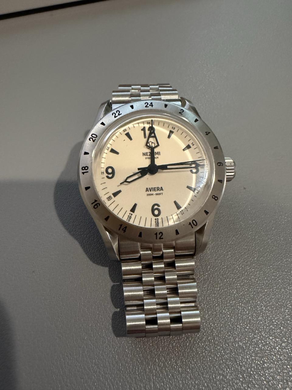 **[WTS] Nezumi Aviera GMT AA3.302 Full Lume - Limited Edition (300 pieces)** * **Album:** https://imgur.com/a/ydzbH1Q * **Timestamp:** https://imgur.com/prgrAnq Up for sale is my **Nezumi Aviera GMT AA3.302** – the stunning limited edition with the full luminous cream dial. This is one of only 300 pieces of this seasonal colorway that will not be reissued. Selling to fund other purchases. **What Makes This Special:** The AA3.302 features a fully luminous dial with 8 layers of custom cream-colored Swiss Super-LumiNova® that glows an incredible blue in the dark. The skeletonized handset and black printed numerals create a completely unique aesthetic that sets this apart from the standard Aviera lineup. This uses a Miyota 9075 making this a truer GMT with independent adjustable hour hand. It's a wonderful no date dial that makes it an easy set and go! **What's Included:** * Nezumi Aviera GMT AA3.302 * Colin 2.2 Jubilee-style bracelet (sized but never worn), quick release and on the fly adjustable! * Original box * Original brochure/papers **Specifications:** * 39mm stainless steel case (47mm lug-to-lug) * Third-generation refined tapered case design * Miyota 9075 automatic "true" GMT movement (independently adjustable hour hand) * 42-hour power reserve * Double-domed sapphire crystal with AR coating * Fixed 24-hour bezel (39mm) * 200m (20 ATM) water resistance * 13.3mm thickness * Assembled in Germany **Condition:** Excellent condition with light wear from use. Crystal is clean, movement running accurately. The Colin 2.2 bracelet was sized to fit but never actually worn on the watch – still in excellent unworn condition. **Price:** $650 shipped CONUS (lower 48 only) via USPS Priority Mail with insurance and tracking. PayPal F&F or Venmo preferred (G&S +3% with references). Not looking for trades at this time. Happy to answer questions or provide additional photos!