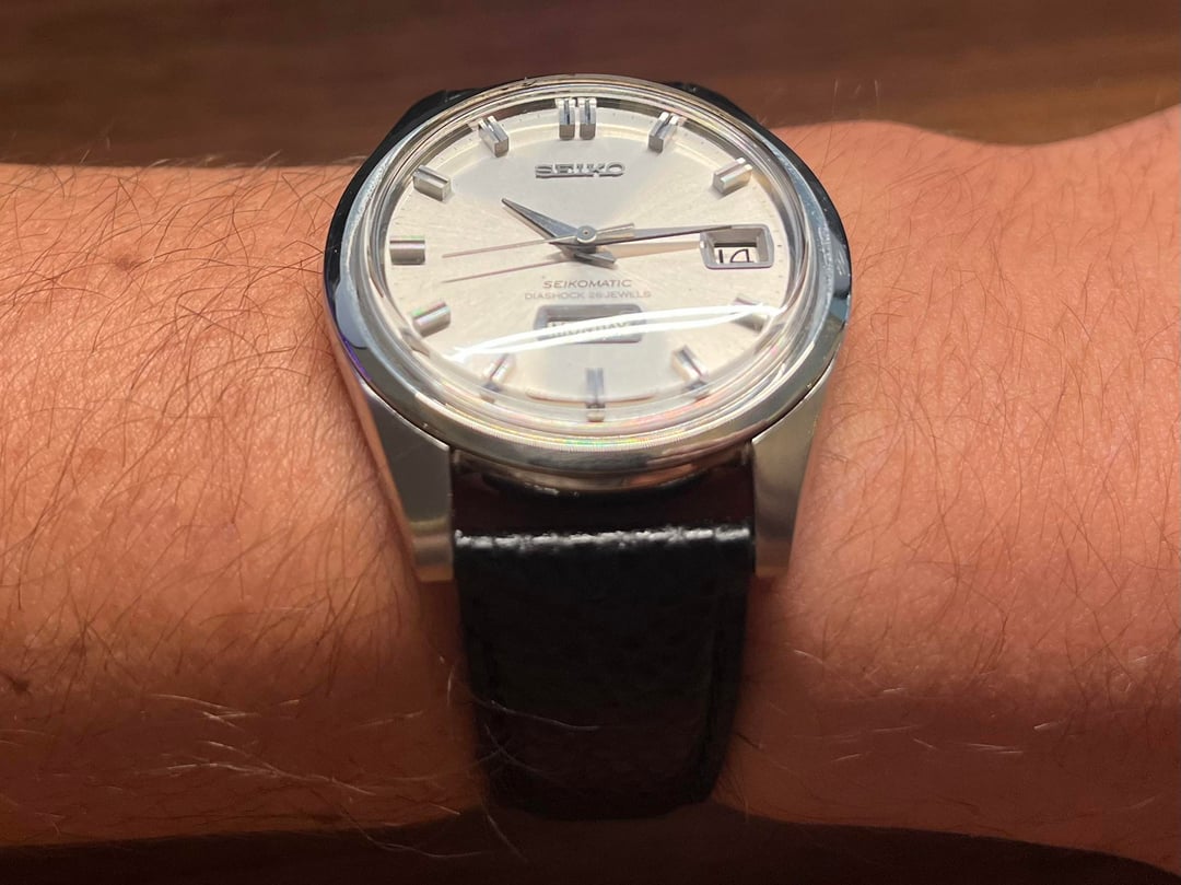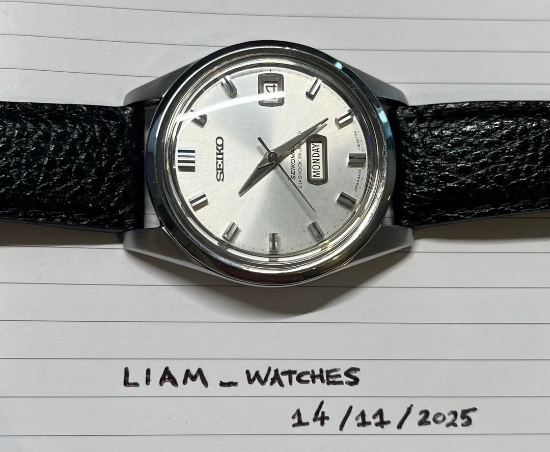The Seiko 6206 caliber, introduced in 1965, marked a shift from the earlier Seikomatic caliber 400 movement. It was designed specifically for the Seikomatic range and is notable for its split day-date dial layout. This Seiko 6206-8130, produced in 1966, features a stainless steel round case with polished sides and brushed front lugs, paired with a silver sunburst dial. Its split day-date display is positioned above the six o’clock marker. This example from my collection remains in overall good condition with only light signs of wear, maintaining both reliable accuracy and power reserve while retaining its charm more than half a century after its creation. Brand type : Seiko Seikomatic Dial : White sunburst Dial Circa : 1966 Movement : 6206 Strap : Black leather Back case : Original Crown : Original Diameter : 36 x 44mm Lug width : 18mm Condition : used, good condition, light signs of wear, refer to pictures shown. Service History: Unknown, ±10s/day Price £325 (shipping included) via PayPal F&F. Not looking for trades.