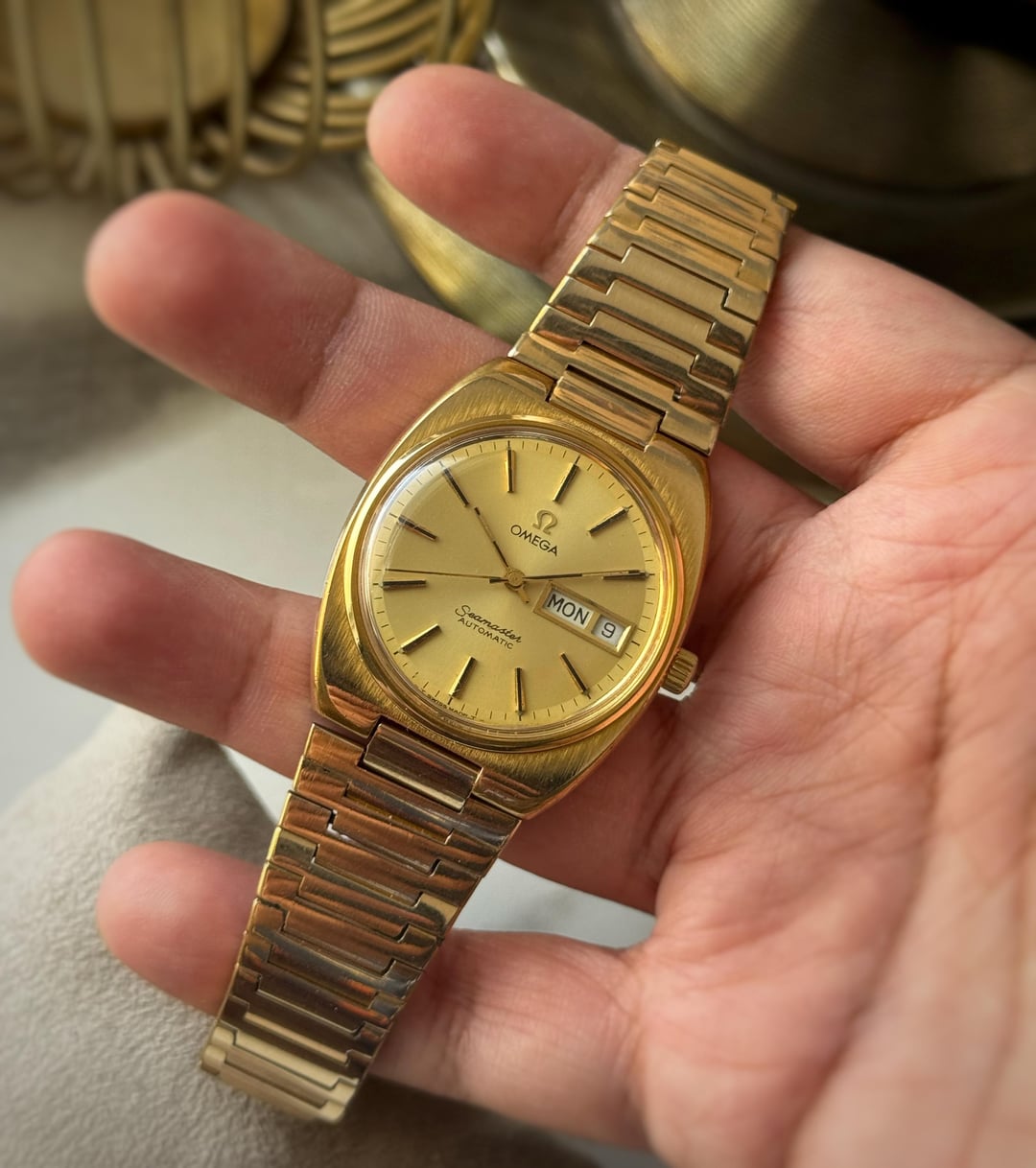 [WTS] Omega Seamaster 166.0216 Circa 1979 only for 675$ Shipped🚢 Up for sale is an omega seamaster reference 166.0216 from 1979 featuring a stainless steel/gold plated case with a case size of 35mm. Condition of the case is good no major dents or dings just a few hairline scratches overall. Dial is clean with a beautiful champagne color. Omega signed crown, crystal and clasp. Comes on its original omega bracelet that can fit a wrist of approximately 7 inches in size, the bracelet shows signs of aging, it has become a bit stiff as time and continuous waering has taken it's toll. Automatic movement calibre 1020 working perfectly fine with no malfunctions and keeping pretty accurate time as it should. Watch only! Asking 675$ shipped via FedEx/UPS worldwide Payment through Wise/ Paypal F&F/Crypto Will be shipped in 2/3 days