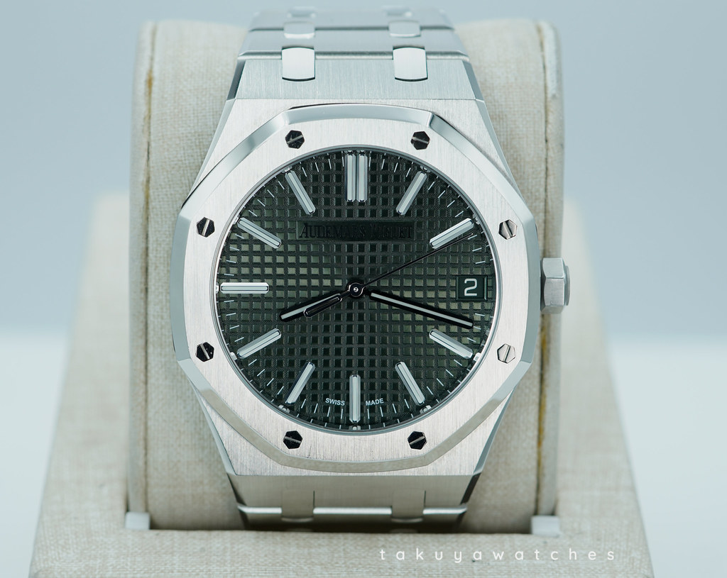 Hi, Selling An Excellent Condition & Very Beautiful, Discontinued Only One Year Production 2022 41mm Audemars Piguet Royal Oak "50th Anniversary" 15510 Self Winding Stainless Steel with Khaki Green Dial. Purchased from Audemars Piguet Boutique in 08.2022. Watch running perfect with Non issues. Full Links. Full Set & Under 5 Years Factory Warranty.