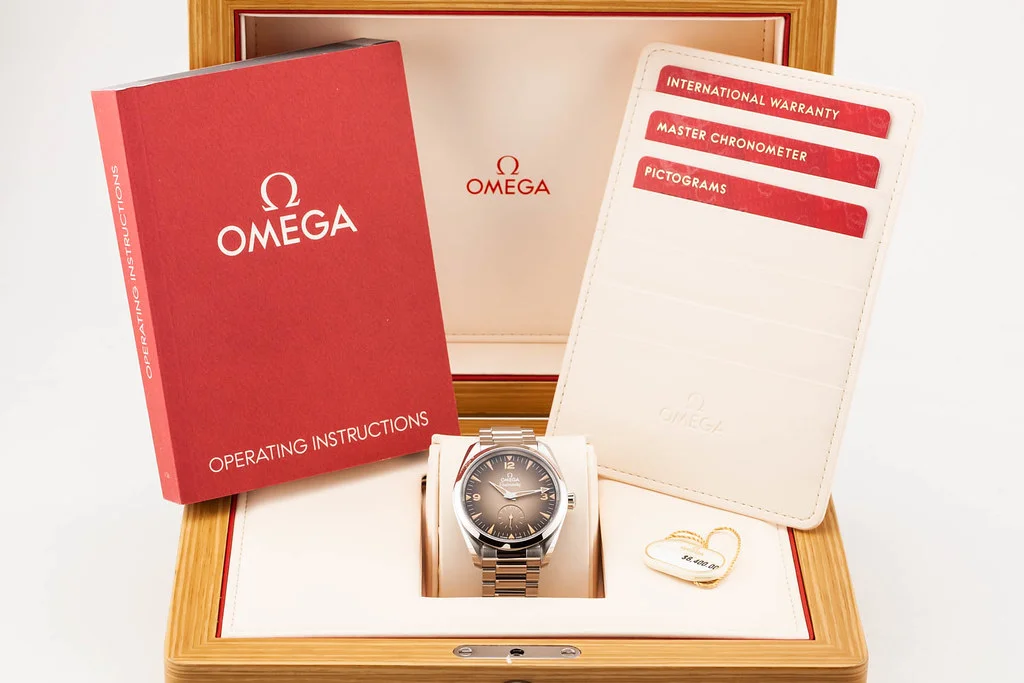 Up for sale is a brand new Omega Seamaster Railmaster 38mm Brown Dial with Small Seconds, reference # 235.10.38.20.13.001. It comes complete with all boxes, papers, booklets, hang tag and Omega Warranty Card dated June 2025.