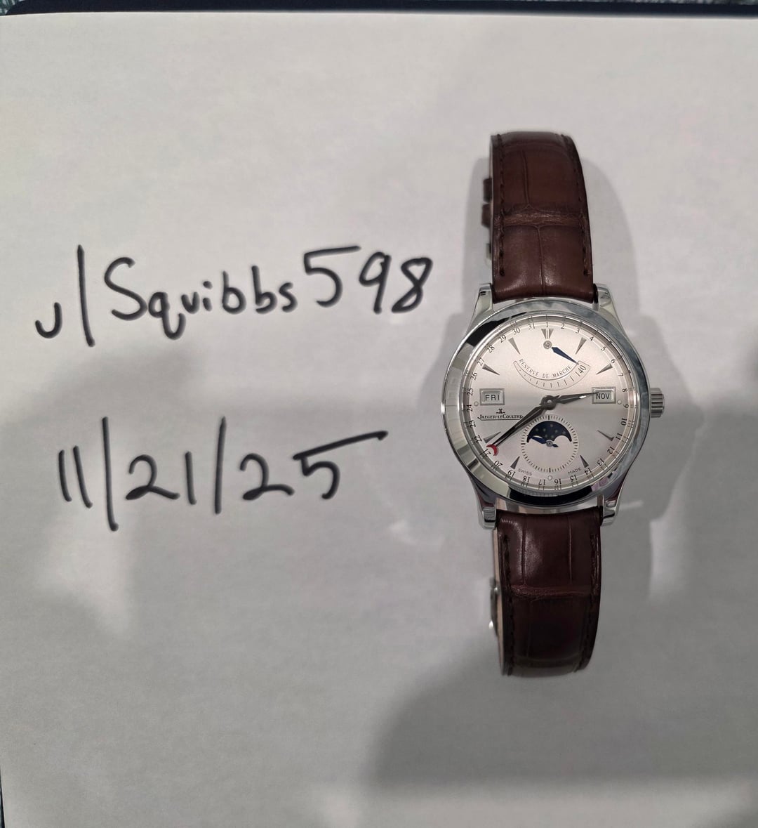 Hi all, Selling my Jaeger-LeCoultre Master Calendar (Q151842A). The watch is in like-new condition and was just fully serviced, so it’s running perfectly and ready for a new owner. It comes as a complete full set — box, papers, booklets, and all accessories. The watch has not been worn much. It was bought in 2015 and has sat in a drawer for nearly all the time since then. Details: Model: Jaeger-LeCoultre Master Calendar Reference: Q151842A Condition: Like new / mint Service: Just serviced (documentation included) Set: Full set (boxes, papers, everything it originally came with. The manual is still sealed.) Movement: JLC automatic calibre with day, date, month, and moonphase Size: 39mm (classic and very wearable) Strap: Includes original strap and clasp This is a beautiful, elegant piece that punches way above its price point — perfect for someone who wants a high-end dress watch from a true top-tier manufacture. Selling to fund another watch. Open to reasonable offers. Located NYC. Meetups are preferred but shipping CONUS is available at buyers expense. Happy to provide additional photos, timestamp, or video on request. Thanks for looking!