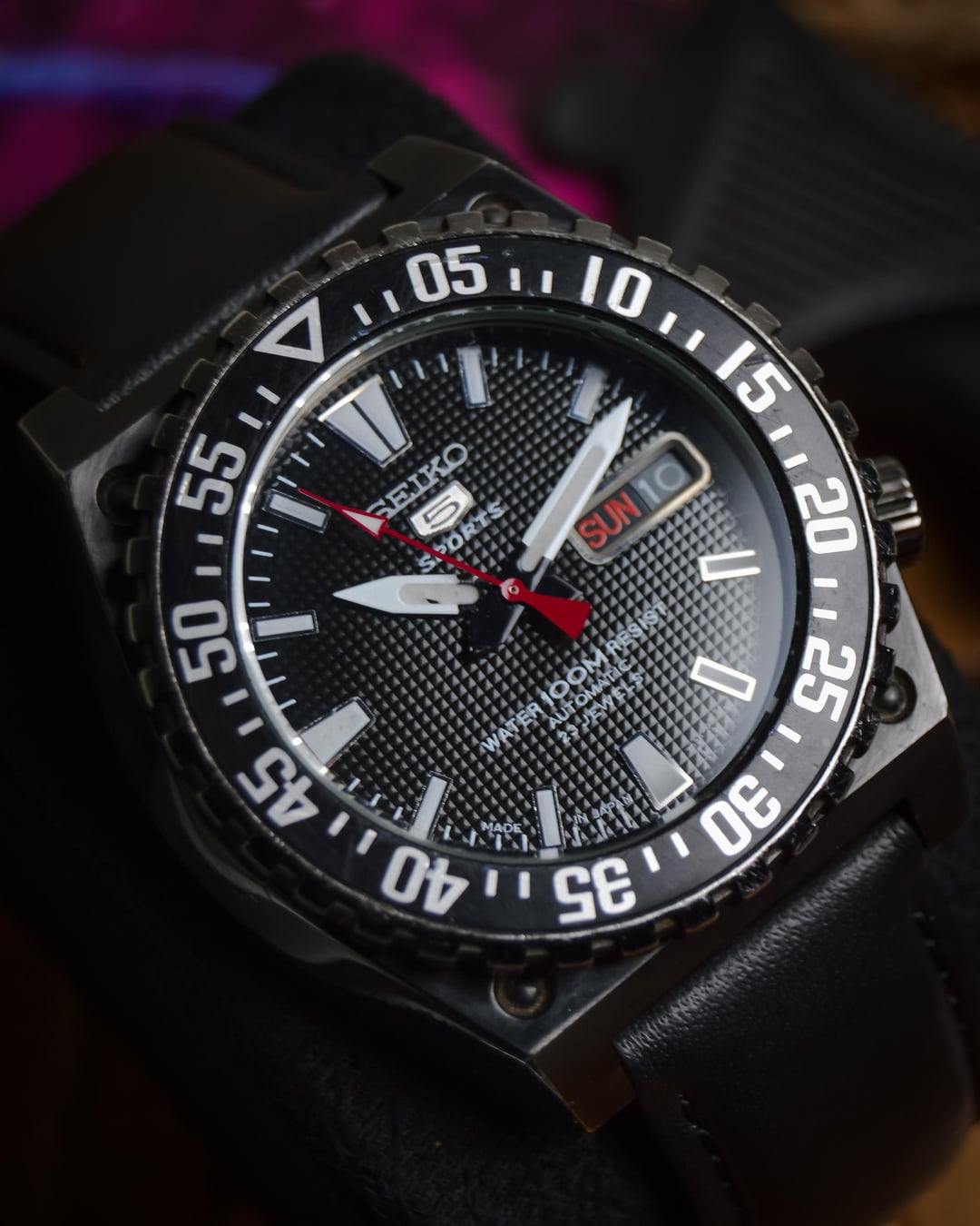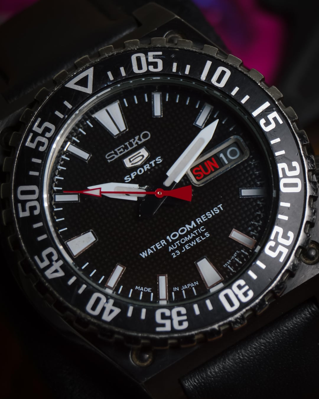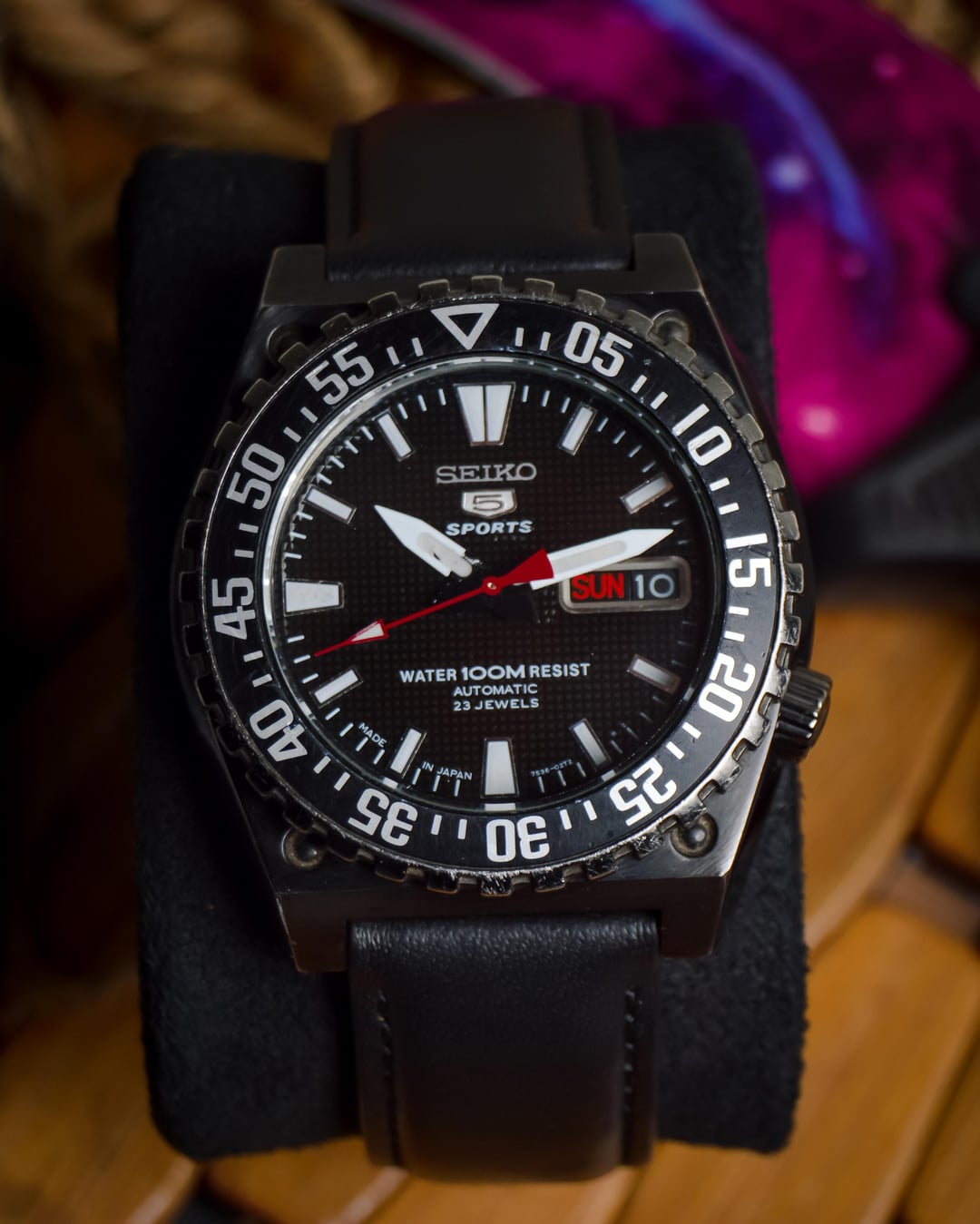 [Timestamp](https://postimg.cc/8JLnpkNy) Hey Watchexchange! Up for sale is the **Seiko 5 Sports SNZD73 (7S36-02B0)**, a bold and stealthy timepiece that blends tactical aesthetics with everyday wearability. The **full black stainless steel case** gives it a striking, aggressive presence, while the **waffle-textured dial** adds depth and contrast. Sharp **lume-filled indices and hands** ensure excellent readability, paired with a **unidirectional rotating bezel** for added functionality. Powering this beast is the reliable **23-jewel Seiko Cal. 7S36 automatic movement**, visible through the **exhibition caseback**—a rare touch for a tool-oriented piece. It’s currently fitted with a sleek **aftermarket black leather strap**, which adds both comfort and a stylish twist to the all-black design. 🔹 **Dimensions:** • Case Diameter: *41mm* • Thickness: *14mm* • Lug Width: *20mm* The watch is in excellent working condition, running strong and ready for daily wear or adventure. As a discontinued Seiko 5 Sports model, it carries both wrist presence and collector appeal. 💵 **Price:** $199 shipped 🚢 **Shipping:** UPS (Worldwide) 📦 **Payment:** ***PayPal F&F*** or G&S (+4.5% international fee) or **bank wire (US banks accepted)** 📩 DM me for more pics, wrist shots, or a custom timestamp. A stealthy Seiko 5 Sports with a waffle dial, blacked-out case, and exhibition back—this one’s built to stand out while flying under the radar. Follow my **Instagram** through the link in my Reddit profile to see more vintage pieces and upcoming listings.
