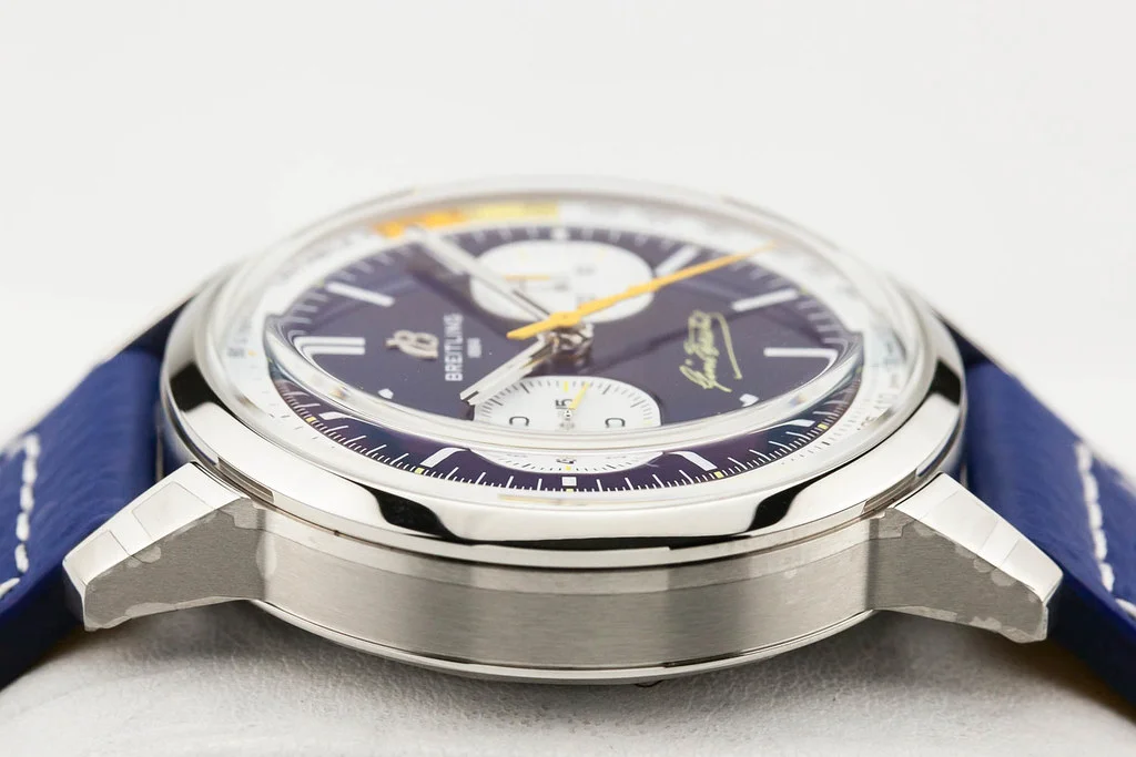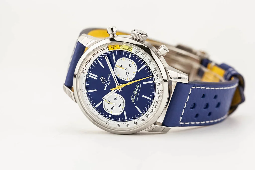 Up for sale is an unworn condition Breitling Top Time B01 Gino Bartali 41mm Blue Dial on Leather Strap, reference # AB01767A1C1X1. It comes complete with all boxes, papers, booklet, hang tag and Breitling Warranty Card dated May 2025. One of 750 pieces.