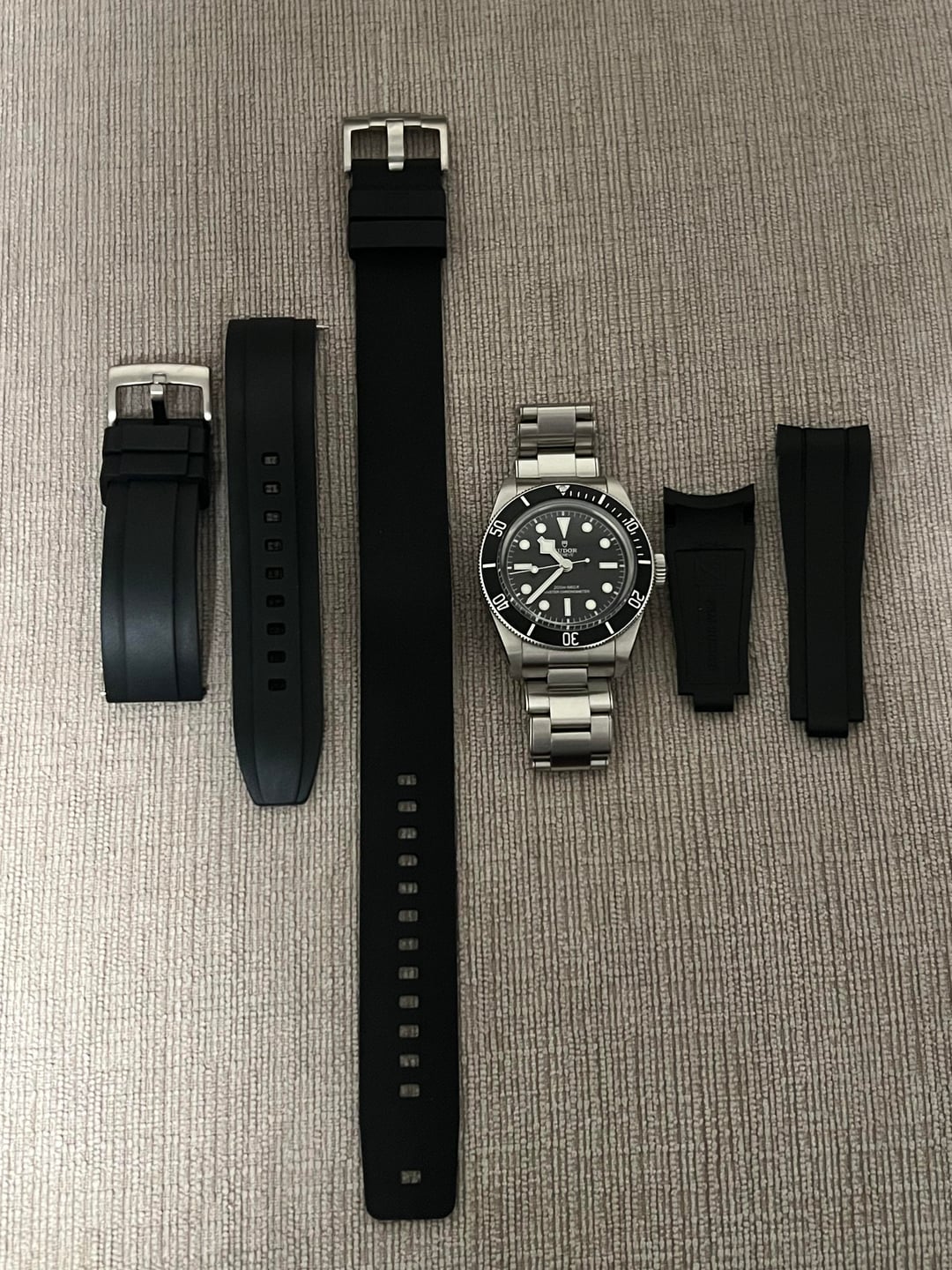 I have for sale a Tudor Black Bay Monochrome Black Dial on Oyster Bracelet M7941A1A0NU-0001 February 2025 Full Set. The watch is in excellent pre-owned condition with a few light hairlines on the polished case sides.  The bracelet is in excellent condition with minimal signs of wear mostly appearing on the clasp.  The bracelet is sized for a 6.75 inch wrist and includes one extra link.  I have included a Zealande FKM Rubber Strap with fitted end links, and Zealande FKM single pass rubber strap.  The watch comes double boxed with all manuals and Tudor international warranty card.  Price:  $3800 shipped and insured, CONUS Only, No Trades Payment:  Zelle, Wire, or PayPal Friends