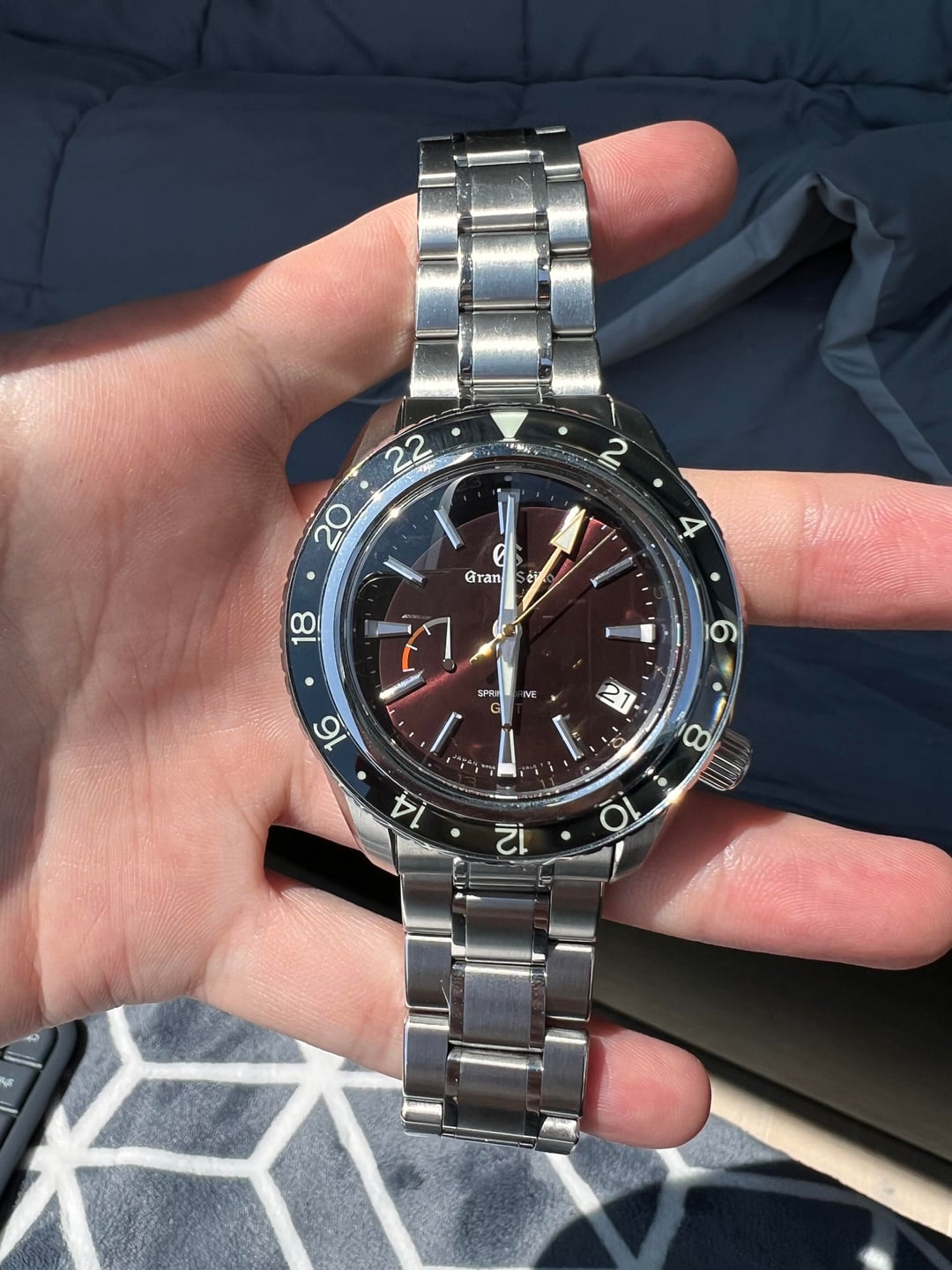 [https://www.grand-seiko.com/sg-en/collections/sbge245g](https://www.grand-seiko.com/sg-en/collections/sbge245g) [https://www.beansandbezels.com/reviews/grand-seiko-sbge245/](https://www.beansandbezels.com/reviews/grand-seiko-sbge245/) Limited to only 600 pieces this Spring Drive GMT is the ultimate travel piece with a deeply unique burgandy dial. Complete with full box, papers, and additional rubber straps, this is available out of NYC with shipping if necessary. The watch is in excellent condition and was very seldom worn. Brand: Grand Seiko Model: SBGE245 Movement: Calibre 9R66 - Spring Drive Case: 44mm Crystal: Dual-curved sapphire crystal Full Set: Box, Papers, Extra Straps Location: NYC Price: $5,250 + Shipping TIMESTAMP: [https://imgur.com/a/sbge245-YOicp45](https://imgur.com/a/sbge245-YOicp45)