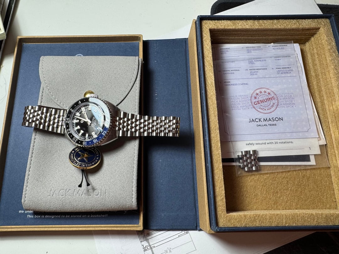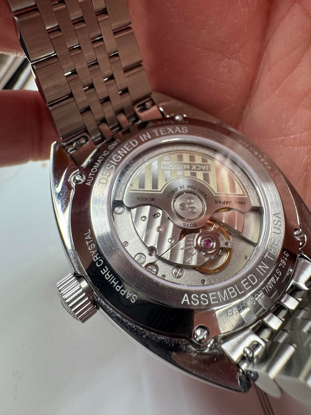 Looking to sell my Jack Mason Dark Night as I don’t need a GMT and do not wear it. It comes complete and is in near mint condition. -40mm case -20mm lug width -Miyota 9075 movement Asking $850 shipped in CONUS