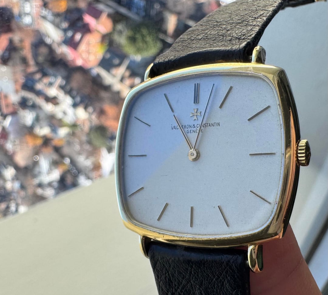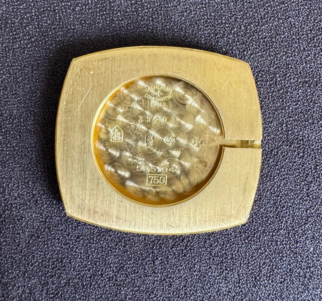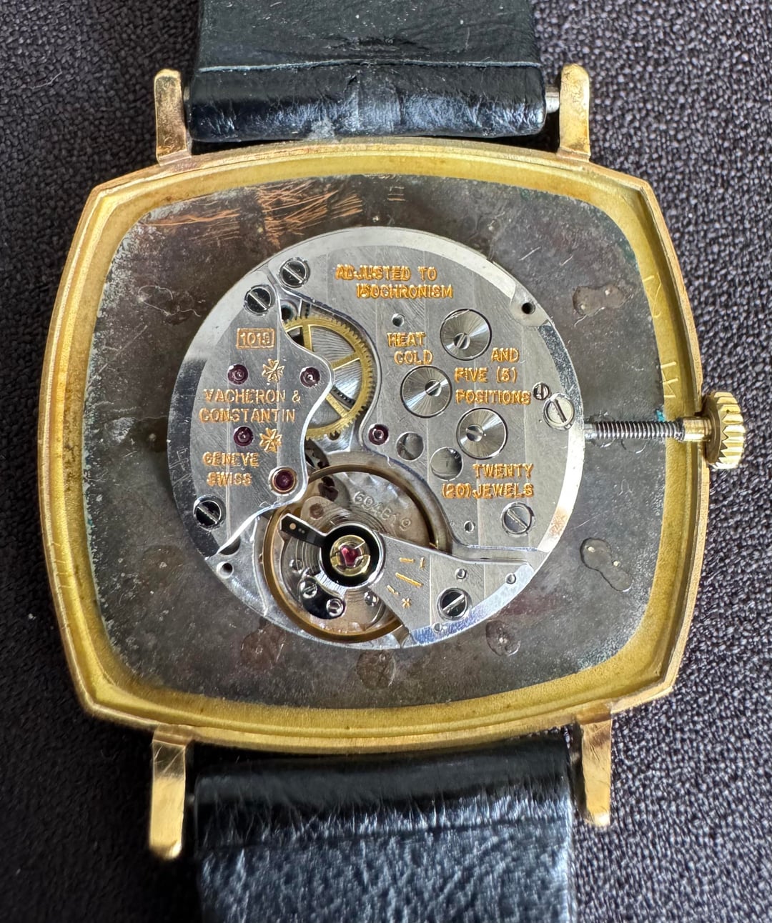# Up for sale is a Vacheron & Constantin ref. 39203 in 18k yellow gold. Circa early 1970s. The watch runs, but I would recommend a service due to age and only known service occurred in 1991. Selling because the watch form is not for me. **Case:** 18k yellow gold with snap-on case back. Fair condition. Dings around the case and on lugs. Light 10mm scratch on crystal between 12 and 1 - was very difficult to capture on photos. I have highlighted the case from various angles. Feel free to request more photos or FaceTime. 33.5mm (without crown) / 36.5mm (lug-to-lug) / 18.5mm (between top lugs, slight bend on one lug) / 19mm (between bottom lugs) / 4mm thick / weight: 25.2g. **Dial:** Appears to have some dirt/dust on the face. Hands are original. Font and Maltese cross remain sharp. Original crown. **Strap:** Chopard black leather strap with gold-filled buckle. Approx 17.7mm at its widest point. Approx 1.7mm thick Movement: Caliber 1015 – manual wound. Last serviced in 1991 **Price:** **$4,000 OBO with UPS Next Day Air shipping included with sale. Face to face also an option in southeastern PA/South Jersey** Zelle payment preferred. I’m new to this sub, but I have plenty of activity on r/pmsforsale with references if needed. Thank you