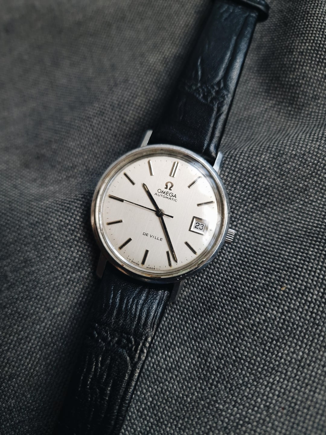 Here’s an absolute banger of a watch: a 1973 Omega De Ville Automatic in all-original condition, powered by the caliber 1012 with quickset. The silver brushed dial, applied logo, and original Omega-signed crown and crystal are all present and untouched. It also includes the original Omega buckle. A great entry into vintage Omega without the hype tax. **Condition:** Honest wear for its age. Some markings on the case. Minor corrosion inside the case. The crystal looks very good. Please see the pictures for full condition and clarity. **Case Size:** 35 x 41.7mm stainless steel case with a thickness of 10.7mm and a lug width of 18mm. **Movement:** Omega 1012, automatic with 23 jewels, 28,800 bph, quickset date, and a power reserve of 42 hours. I don’t know its service history, but everything is working as it should. **Other Information:** * Original Omega-signed crown, crystal, and buckle. **Price:** Asking $650. Please add $25 for worldwide shipping. Payment methods include Wise, ACH transfer, Revolut, Bitcoin (On-Chain or Lightning), or PayPal G&S for buyers with solid references. Add +7.5% for currency conversion fees on the latter. Portugal has suspended all local post shipments to the US, but I can still ship with UPS ($100). Established seller with over 220 transactions – buy with confidence! Make sure to follow me on Instagram (@daily.worn) to check out the newest additions. [Pictures](https://imgur.com/a/eVkqZGZ) [Timestamp](https://imgur.com/a/DLukOo0)