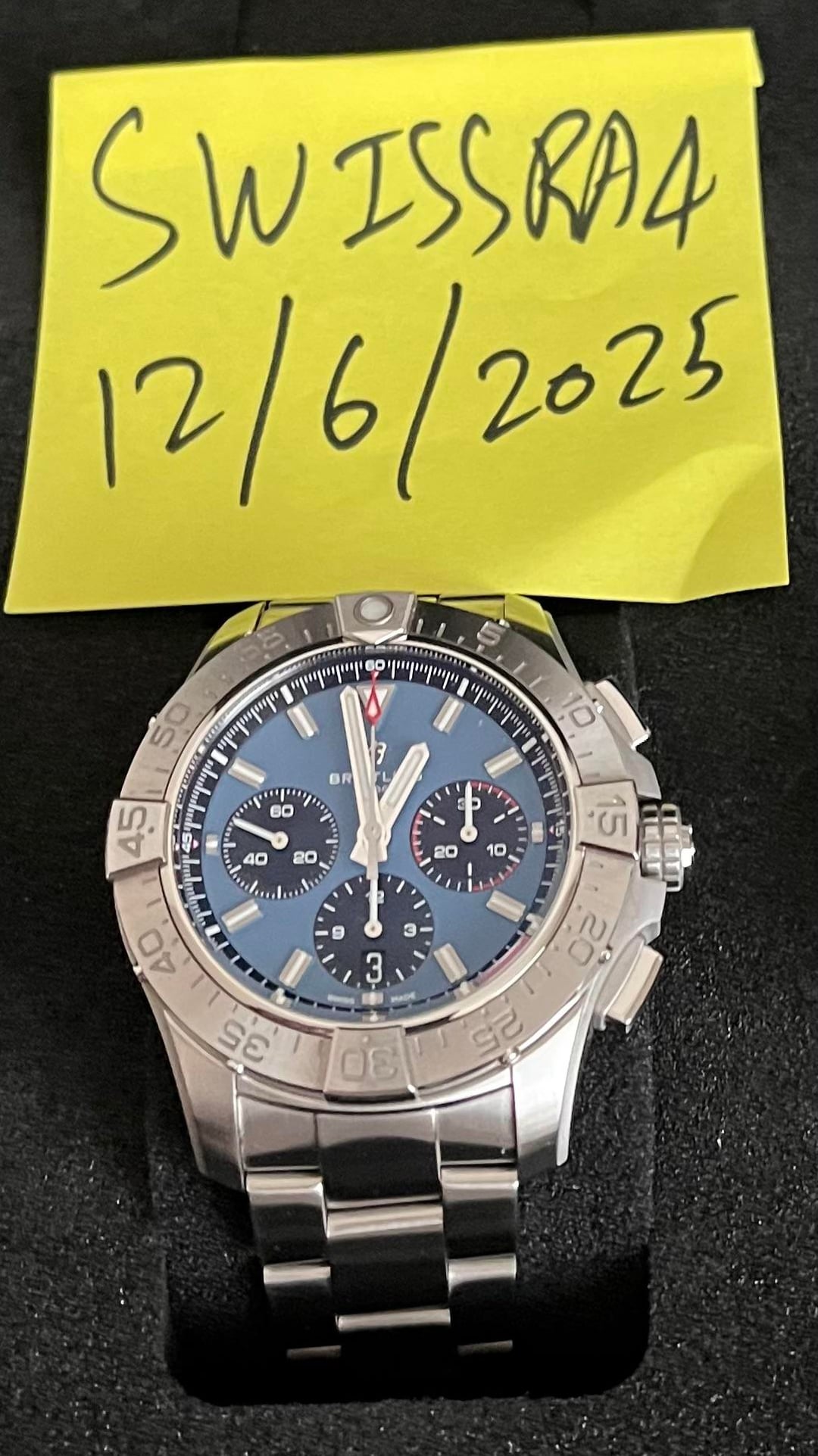 Model: Breitling Avenger B01 Chronograph AB0147 44mm Factory warranty valid through AUG 2031. Mint and full set. $4750 shipped via FedEx anywhere in the US. Payment through zelle, wire, venmo or applepay. NO TRADES. Tons of references/feedback available.