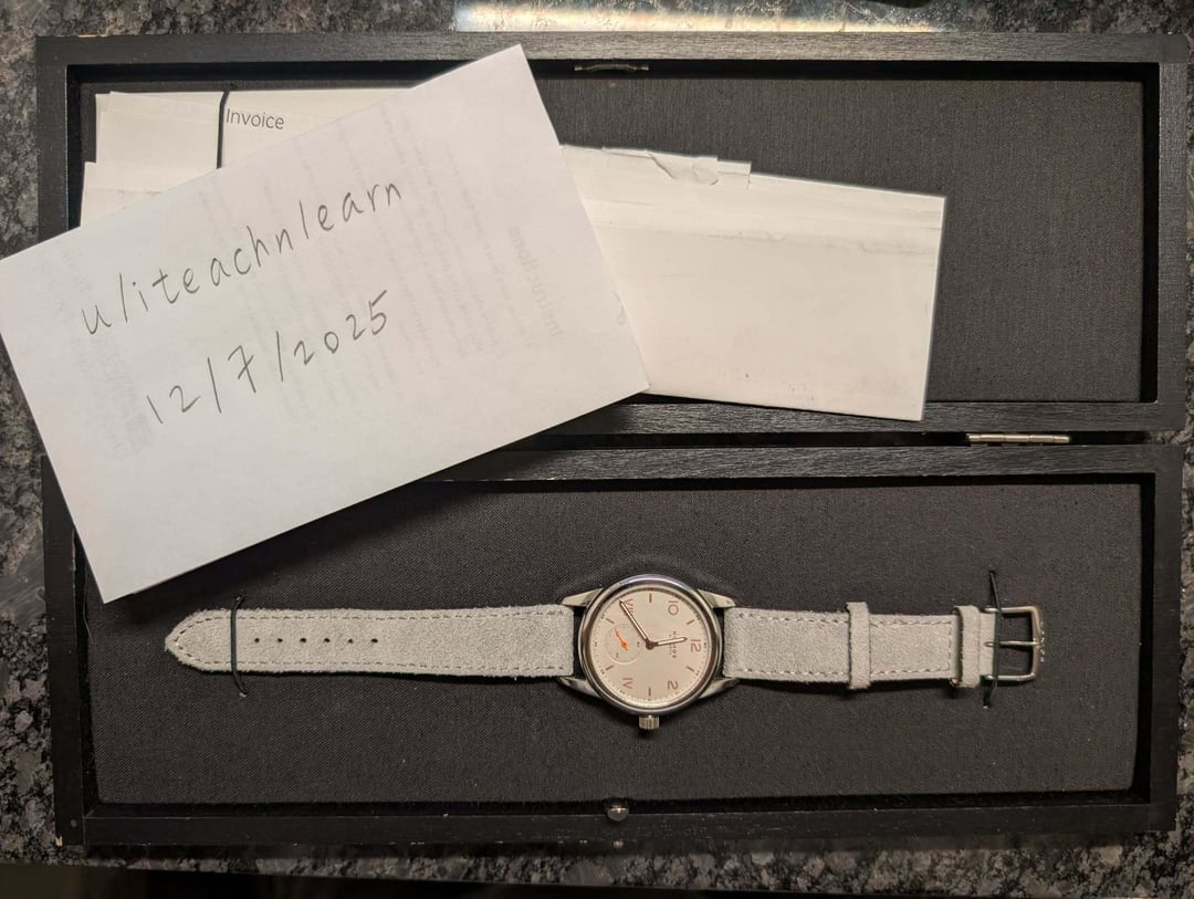 This is an absolutely beautiful watch. I wore it occasionally but have come to the realization that this kind of watch (manual, minimalistic) is just not for me. Comes with Box and Papers Asking $1100 OBO includes shipping to CONUS Zelle/Venmo/Paypal From Nomos website: Ref. 708 Case stainless steel, screwed stainless steel back Glass domed sapphire crystal glass Winding manual Dimensions diameter 36.0 mm height 8.2 mm lug-to-lug 47.5 mm Water resistance 10 atm (suitable for swimming) Dial galvanized, white silver-plated Hands rhodium-plated, with superluminova inlay in white (blue luminescence), seconds hand neon orange Strap Vegan velour remborde velvet gray lug width 18 mm
