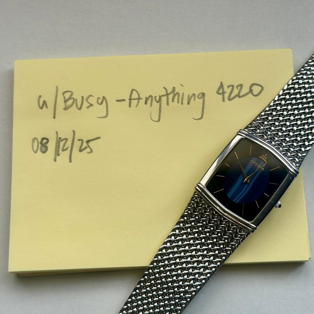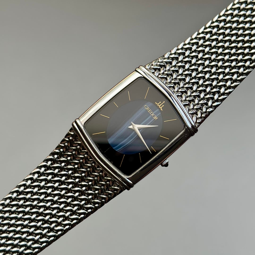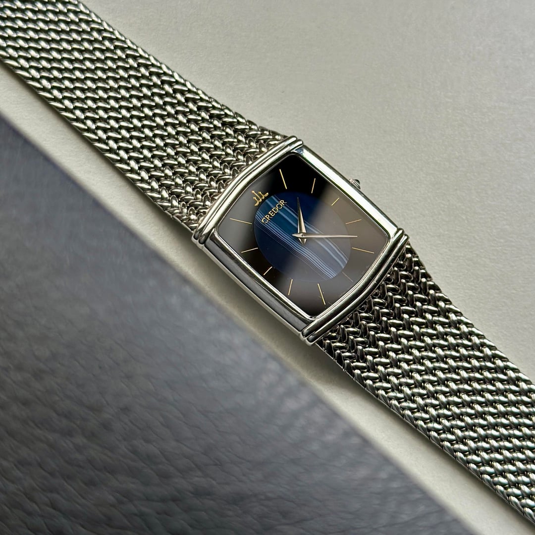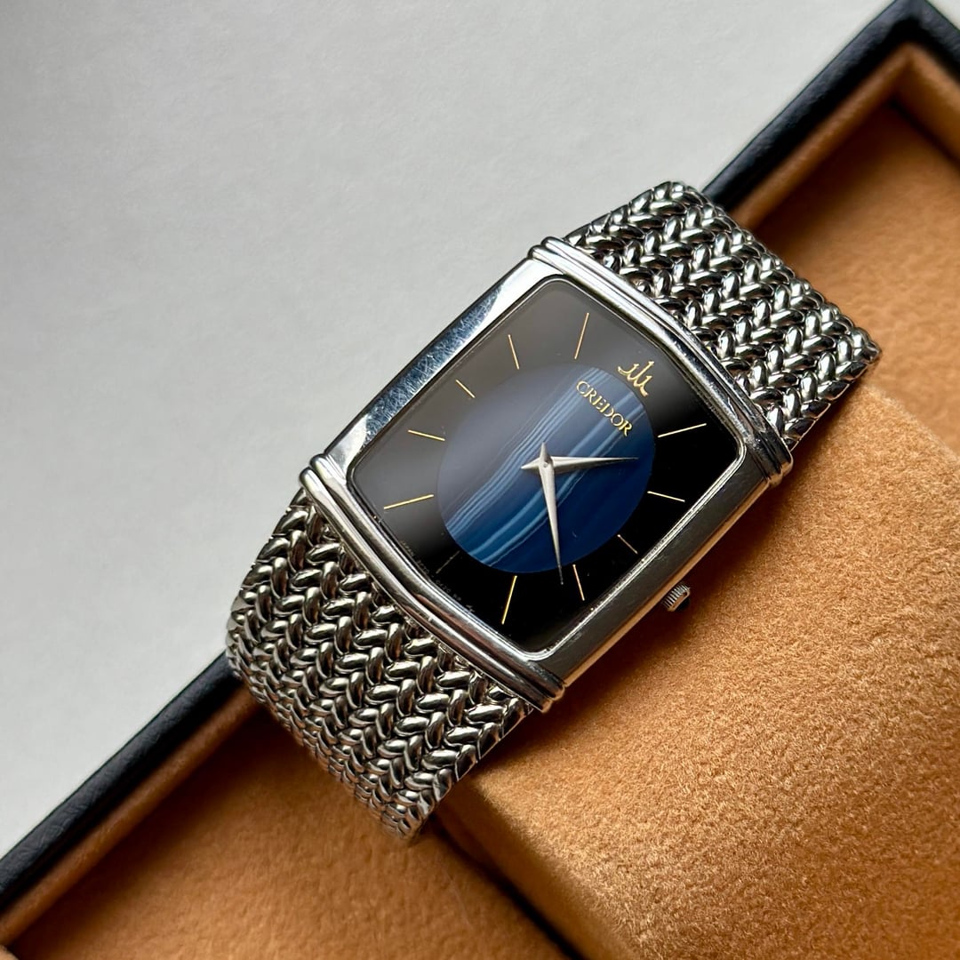 Up for sale is a refined and elegant Seiko Credor from 1987, featuring a stunning blue agate dial. 2F70-5380 Dial: Blue Agate with Onyx Stone Case Material: Stainless Steel Case Size: 26mm x 29mm Bracelet: Integrated Credor bracelet **(fits approx. 6–6.3 inches)** **Price:** * **$380 USD shipped** * Shipping: Worldwide available (DHL Express) * Payment: PayPal F&F (or G&S +5% for established buyers), Wise also accepted * Comment before PM.