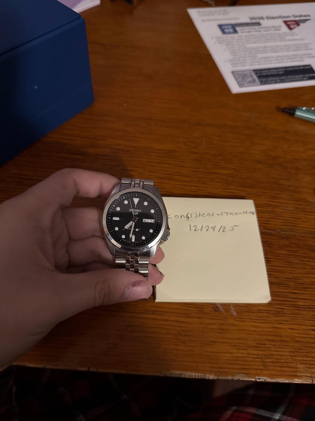 This seiko dress Kx is in good condition 9.5/ten has some cosmetic scratches on the metal around the face comes with full kit minus warranty card as well as on a strap code strap as well as the original if you guys are interested in it as well $190 after shipping Comes with both straps and box with all the links for the new strap and old one