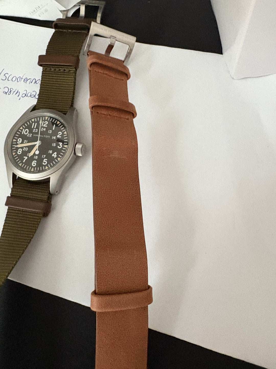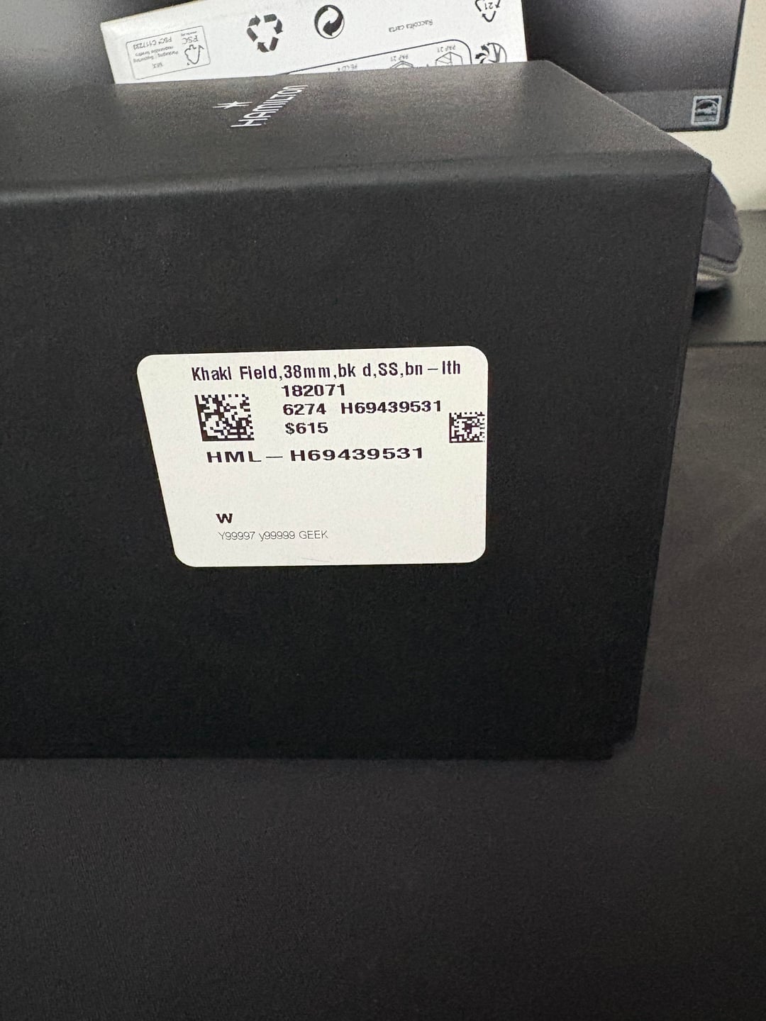 Watch: Hamilton Khaki field 38mm Reference: H69439531 What’s included: box and tags. Extra oem Hamilton nato Condition: good condition, barely worn. Jomashop purchase January 2025. Price: $450 OBO. Terms: Shipping CONUS, payment via Zelle, PayPal FF or Venmo. Sales are final unless misrepresented. Please message with any additional inquiries or requests. Thanks for your time!