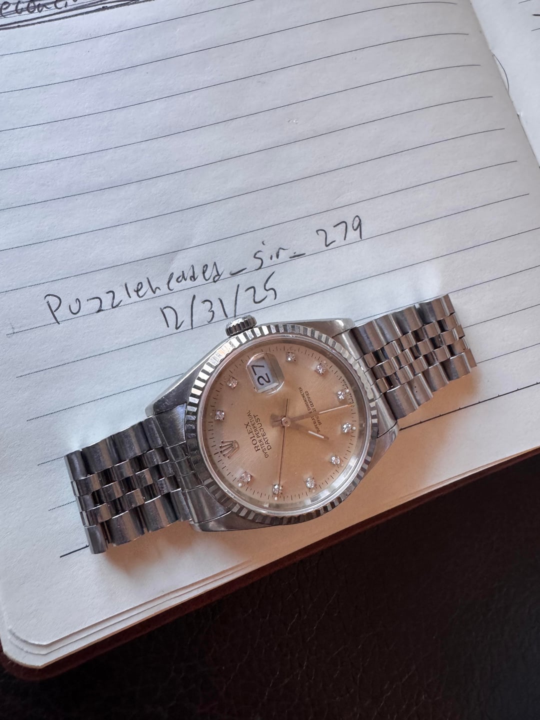 Letting go of a stunning Rolex Datejust 16234 featuring a factory diamond dial that has developed a gorgeous patina, giving the silver dial a unique warmth and character that shifts beautifully in different lighting. Paired with the classic 18K white gold fluted bezel, this reference delivers timeless Rolex elegance with a subtle touch of luxury. This is a fantastic choice for someone who appreciates personality in a watch — not just another Datejust, but one with character and charm that truly stands out. ⸻ 💰 Price $5,850 + shipping (Open to respectful conversation) ⸻ 📝 Condition • Dial: Factory diamond dial with beautiful patina that changes tone in the light • Crystal: Clean, no major marks • Case: Honest wear consistent with age • Bezel: 18k white gold fluted bezel in great shape • Movement: Running strong and ready to wear • Bracelet: Good condition for its age • Set: Watch only ⸻ 📍 Location & Shipping • Located in Charlotte, NC • Fully insured U.S. shipping available • Local meetups welcome ⸻ 💳 Payment Accepted • Bank wire • Zelle • Cash (local) • Venmo (case-by-case) ⸻ 🧾 About Me (Casetowrist) I’ve been selling and trading watches for 10+ years, prioritizing transparency, smooth deals, and trust. Happy to authenticate at a local watchmaker if requested (buyer covers fee). Instagram: @casetowrist Website: Casetowrist.com Open to FaceTime to show the watch shoot me a DM!