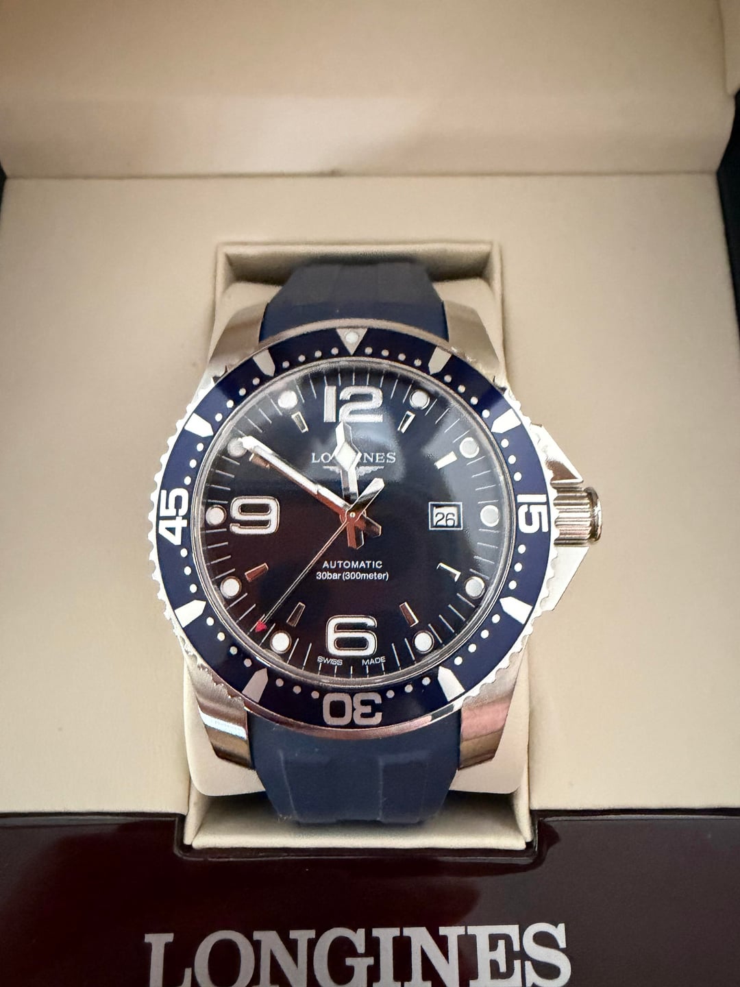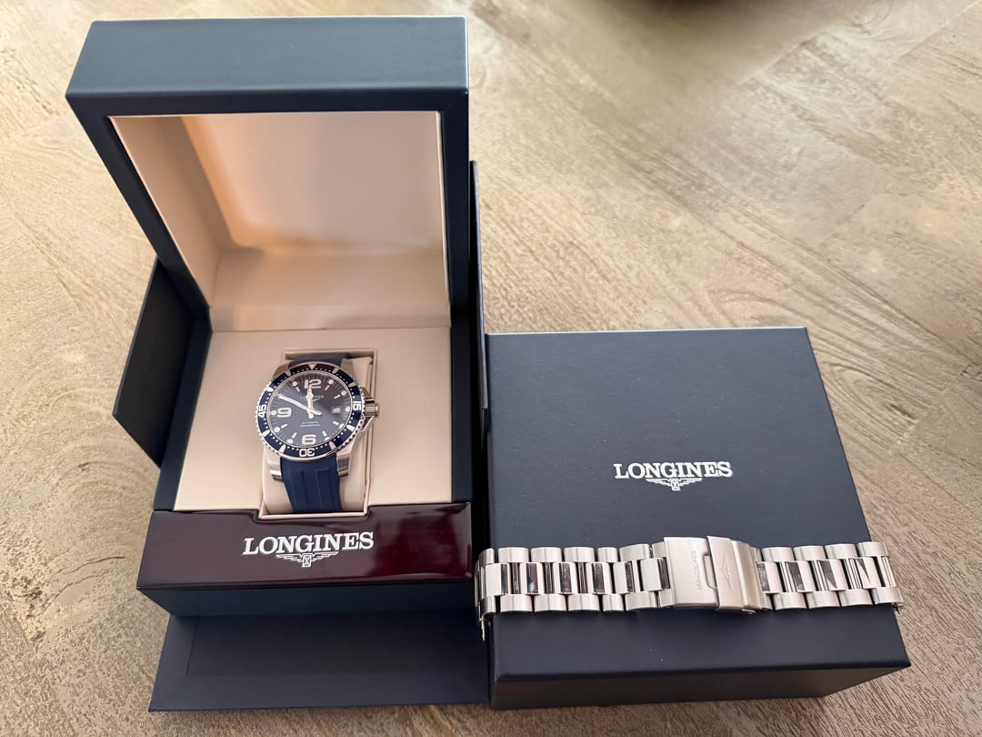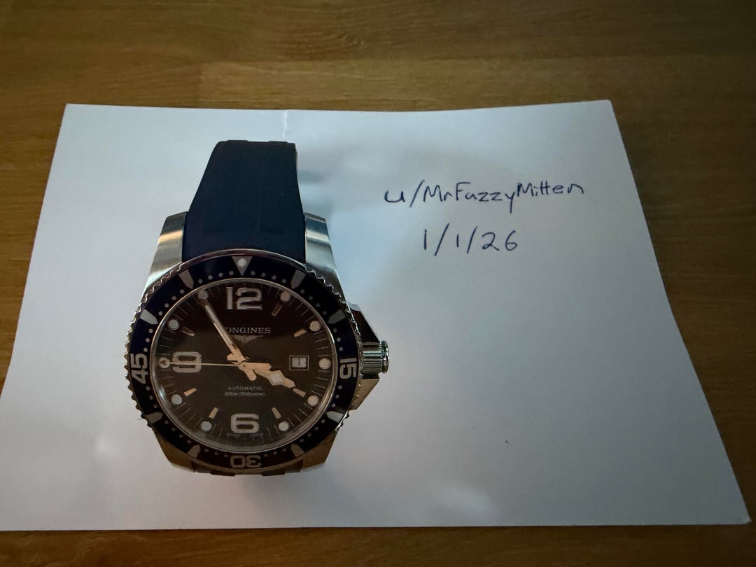 Looking to sell or trade my Longines Hydroconquest. Originally bought here on watchex and I have been wearing it for the past couple months as a daily. I decided that I’m looking for more of a tool/field watch. This is an updated post for the new year, dropping the price a bit (new timestamp included). \-Brand: Longines \-Model: Hydroconquest \-Reference: L3.841.4.96.6 \-Case: Stainless Steel, 44mm, 54.70 lug to lug, 30bar water resistance \-Movement: Automatic L888 \-Braclet: Original bracelet and custom amazon/etsy rubber band (this model doesn’t offer OEM rubber in this case size) \-Condition: Excellent Looking to sell for $700 obo and would also entertain trades (Only really interested in microbrands and mostly titanium/ carbon options).
