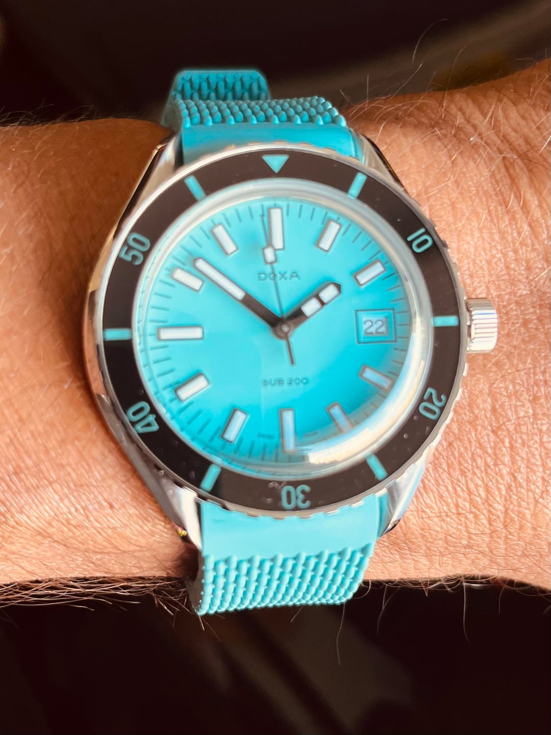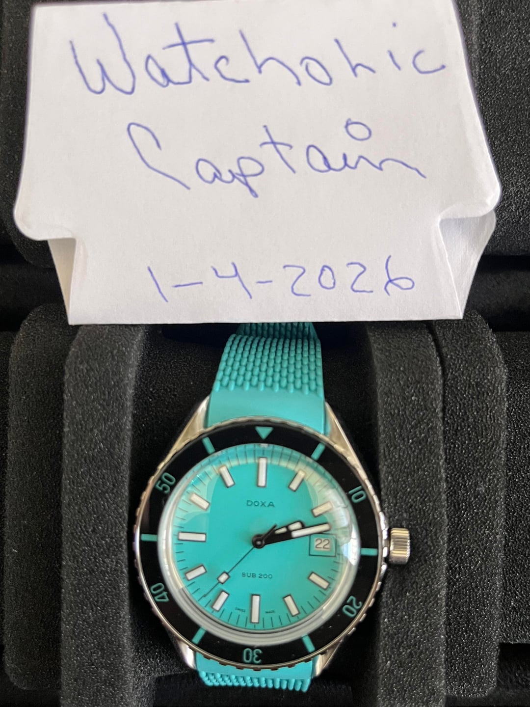 2025 DOXA 200 Teal Blue rubber strap Warranty Card & OE Box In excellent condition AP- $775 with free CONUS Shipping Payment- Zelle, PP F&F, G&S add additional cost with previously reference only. Ready to ship NO TRADES AT THIS TIME MORE PICS UPON REQUEST