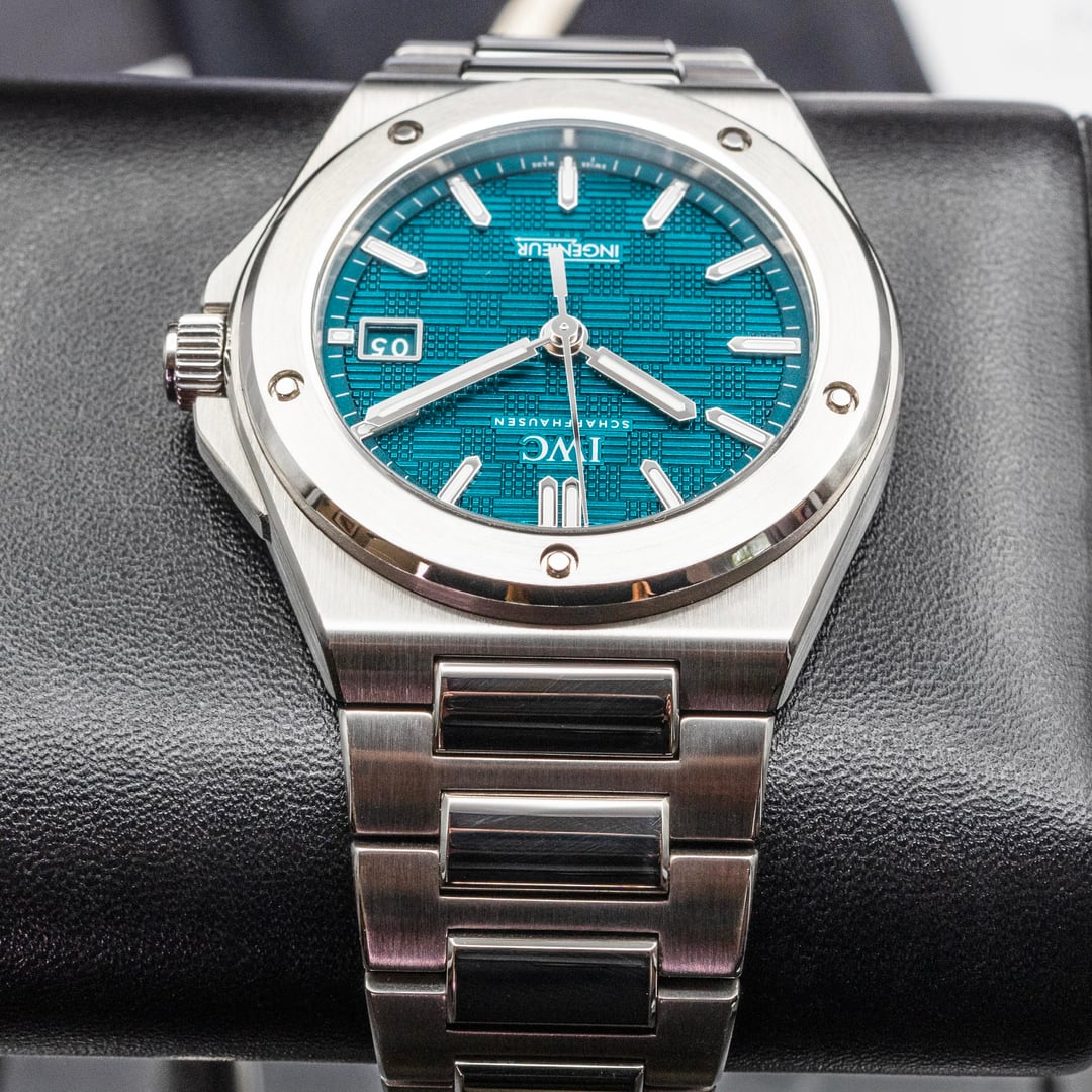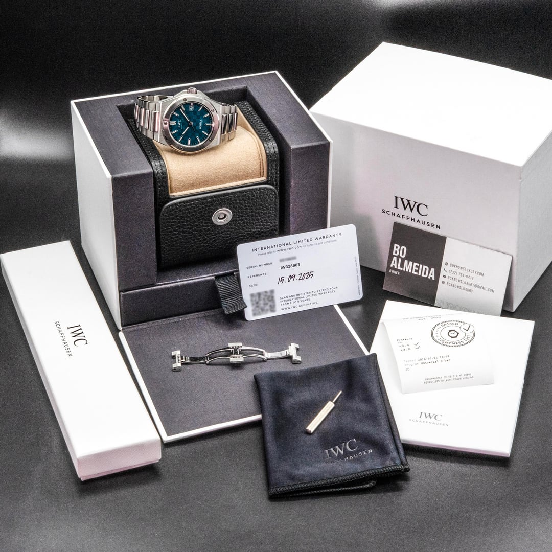 [https://www.dropbox.com/scl/fo/ha23i0nt44s5uu9v5sxoc/ADZGFN491xInAJVqg3FNIFg?rlkey=gi3c7g1izdtn7n9tmraz3fx68&st=hons15f0&dl=0](https://www.dropbox.com/scl/fo/ha23i0nt44s5uu9v5sxoc/ADZGFN491xInAJVqg3FNIFg?rlkey=gi3c7g1izdtn7n9tmraz3fx68&st=hons15f0&dl=0) **INGENIEUR AUTOMATIC 40 IW328903 STAINLESS STEEL GREEN GRID DIAL 40MM - BOX AND PAPERS** **.** Here is a beautiful example of the newer Ingenieur model with some incredible styling / comfort on the wrist. This piece wears perfect on most wrists at 40mm, and features a beautiful aqua-green “Grid” dial, applied indices, and a color matched two digit date wheel at 3 o’clock. This watch also comes with two factory clasps to change up the bracelet feel if desired, as well as full factory warranty! . * **Reference: IW328903** * **40mm stainless steel case** * **Calibre 32111, automatic, 120-hour power reserve** * **MSRP: $12,900 plus tax** **.** ***Contents*****:** Watch, double box set, 2025 warranty card, manual, and a fully linked bracelet with two OEM clasps (Butterfly deployant, and adjustable single fold clasp). ***One year service warranty included at no charge via Bo Knows Luxury, LLC; beginning on date of purchase.*** . **Condition:** Excellent condition with light wear on the case and bracelet. The photos in this album were taken using a macro setup to ensure an accurate representation of the watch's condition. This timepiece has been professionally pressure-tested and thoroughly validated to confirm all functions operate within factory specifications. . ***Price: $9,625.*** *Fully insured overnight shipping included in the US. Payment accepted via:* * *Bank Wire* * *Zelle* * *All major credit cards* . Please message me directly to confirm availability before marking sold! USAF veteran owned company with hundreds of successful deals done, and plenty of references available to any interested buyers. Thanks for looking! 🙏