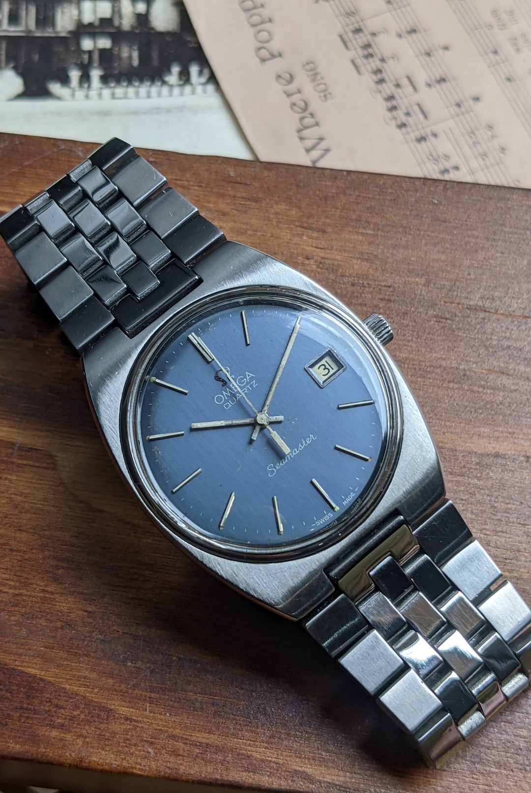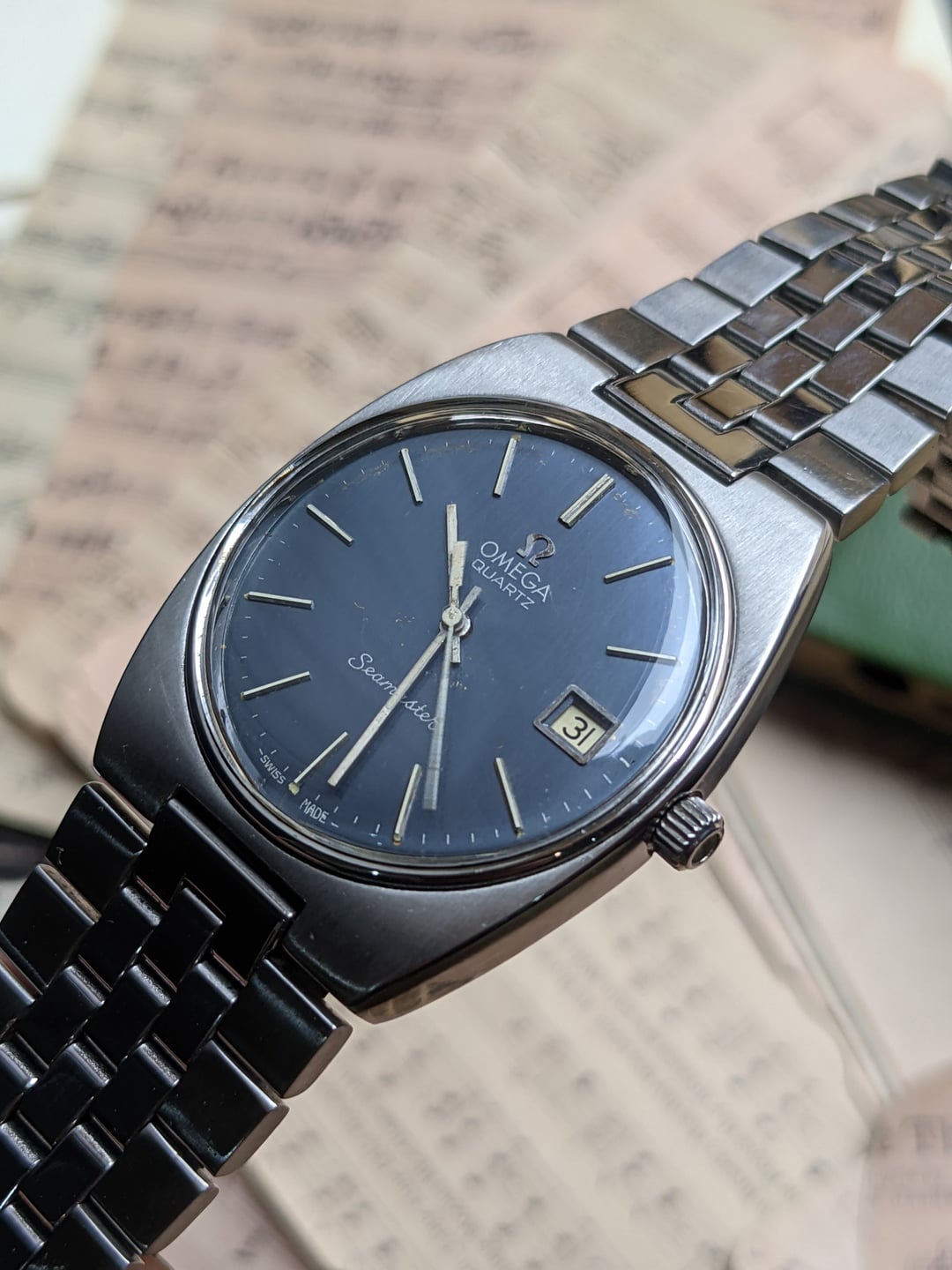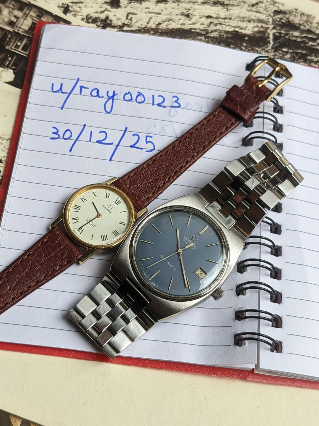 Omega Seamaster (Price $345) Rare Blue Dial (Patina) Quartz Movement Stainless Steel Case Original Bracelet Diameter 36.6mm (including crown) Lug -to-Lug Length 39.7mm Watch Only New Battery Installed Note: Signs of aging on the dial. __________________________________________________ Omega DeVille (Price $225) Quartz Movement Gold Plated Case Original Omega Signed Buckle Aftermarket Leather Strap Diameter 24.8 Lug -to-Lug Length 30mm Watch Only New Battery Installed Payment: Zelle / Wise / PayPal ( F&F Only). All sales are final. Please feel free to ask if you have any questions regarding the watch. Timestamp https://drive.google.com/file/d/1gDEGuOoHypHzm1vhiPnFDtcfRyV0uw26/view?usp=drivesdk