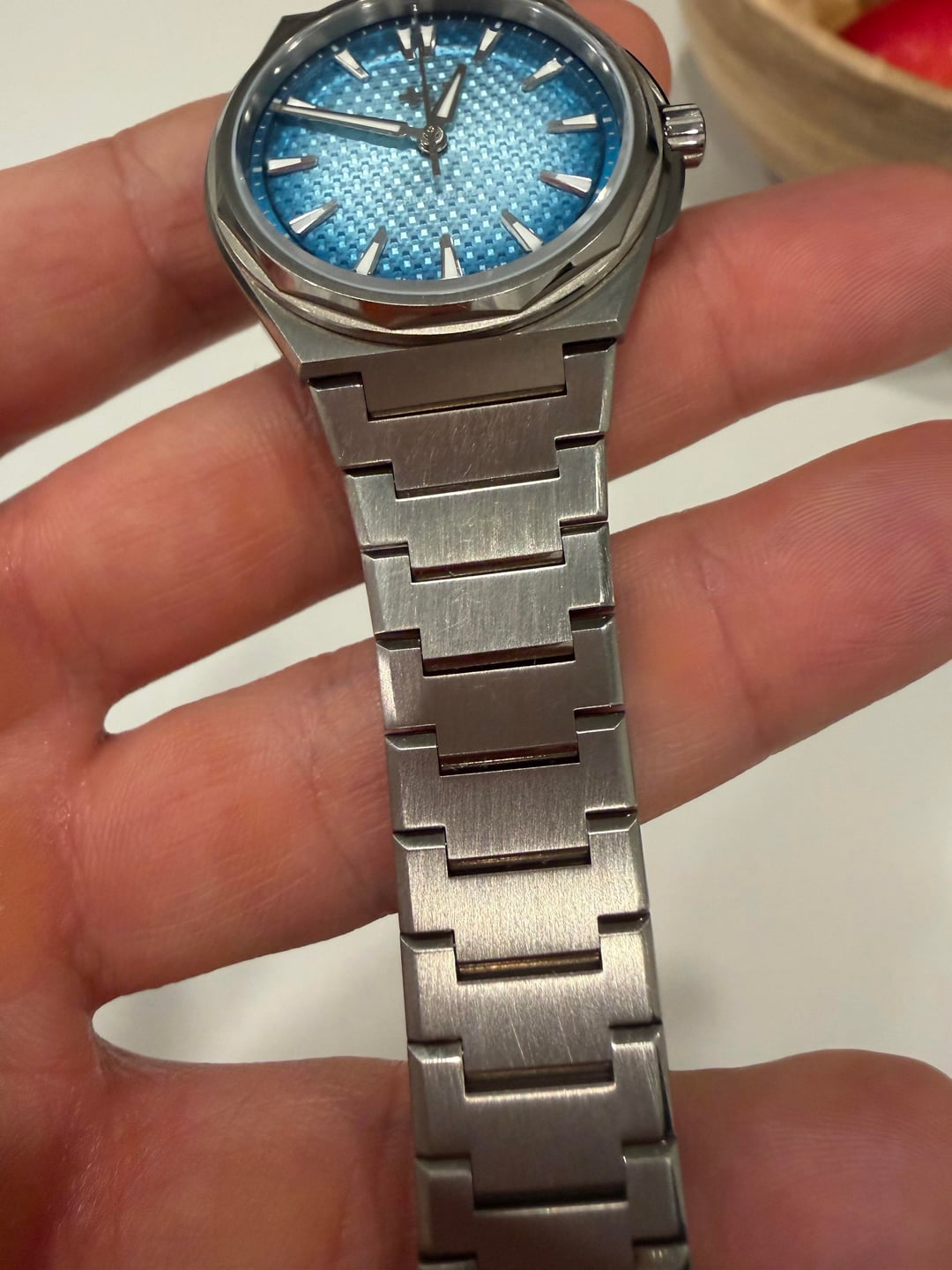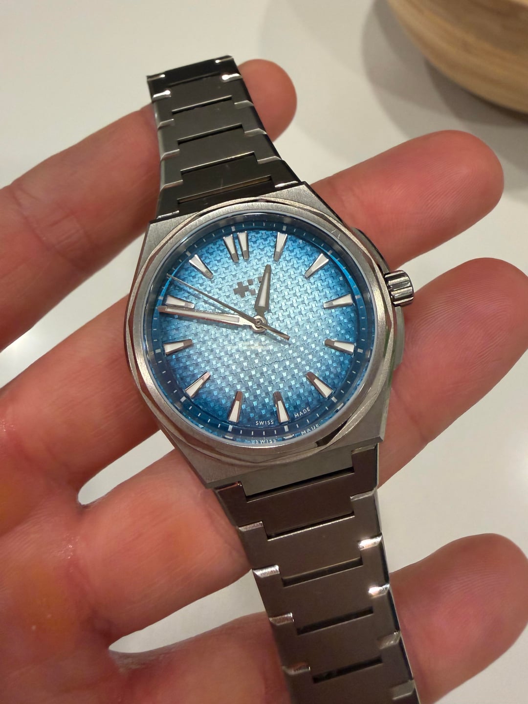 Happy Friday Gang, Throwing out there another gem that is feather light and extremely comfortable to wear daily. The dial on this one is absolutely amazing and it is one of the best colors I’ve seen on any watch. Comes as a complete full kit, includes the Cosc certification, links, card 2023 dated and all you need. Price: $1200 plus 🏷️ 📍 San Marcos, CA Condition: used condition, light blemishes all around, crystal is clear of scratches. As you know TI catches blemishes easy and every few years may need a light touch up but overall in good condition Payment: Paypal, Venmo, Zelle FF only Please feel free to reach out to me if you have any questions or concerns about anything at all. I will be more than happy to hop on a FaceTime call and show me the watch and go over all the payment details and the details around the watch. Everything I sell here is as is an all the pictures are taken right before I list The watch on Reddit.
