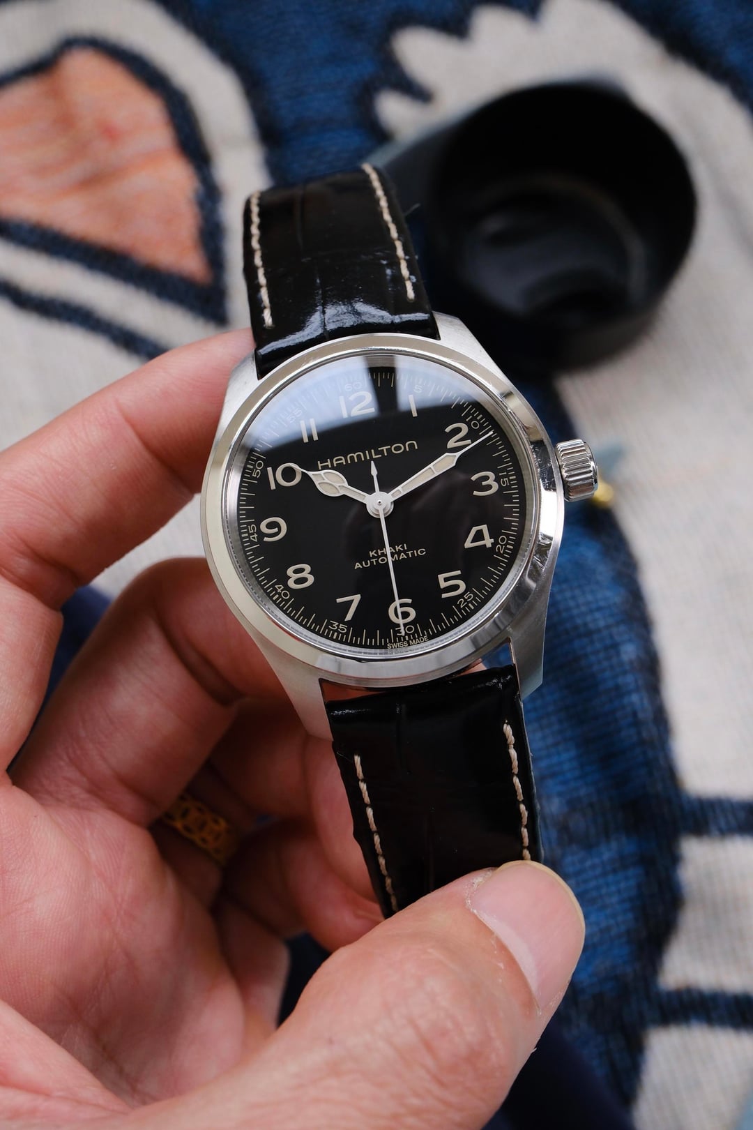 Hi R/watchexchange Up for sale Hamilton Khaki Field Murph 38mm I’m selling my Hamilton Khaki Field Automatic 38mm, one of the most iconic and respected field watches in the Swiss watch world. This modern Khaki Field Automatic stays faithful to that heritage with: -Cathedral-style hands, inspired by vintage military watches for excellent legibility -Classic Arabic numerals (“school-style” numerals), simple and highly readable -Clean, no-nonsense dial layout true to traditional field watch design *Condition: Very Good, run pefectly. There are only a few minor hairline scratches. *Details: -Movement: H10 Automatic with 25 jewels, 21600vph, 80H power reserve. -Dial: Black -Case Size: 38mm * 11.2mm -Crystal: Domed Sapphire with AR coating -Strap: Genuine leather, Original clasp *Included: Box, tag, papers *Timestamp: https://i.postimg.cc/vBccw3m4/DSCF8192.jpg *Photos: https://postimg.cc/gallery/GYDtXPN *Price: $650 + 50$ Shipping worldwide via UPS about 4-5 days (insured & tracking) ( tariffs/duty fee covered by me ) *Payment: PayPal FF or GS (4.6% for buyer) Let me know if you have any questions or for more pictures. Thanks for looking!