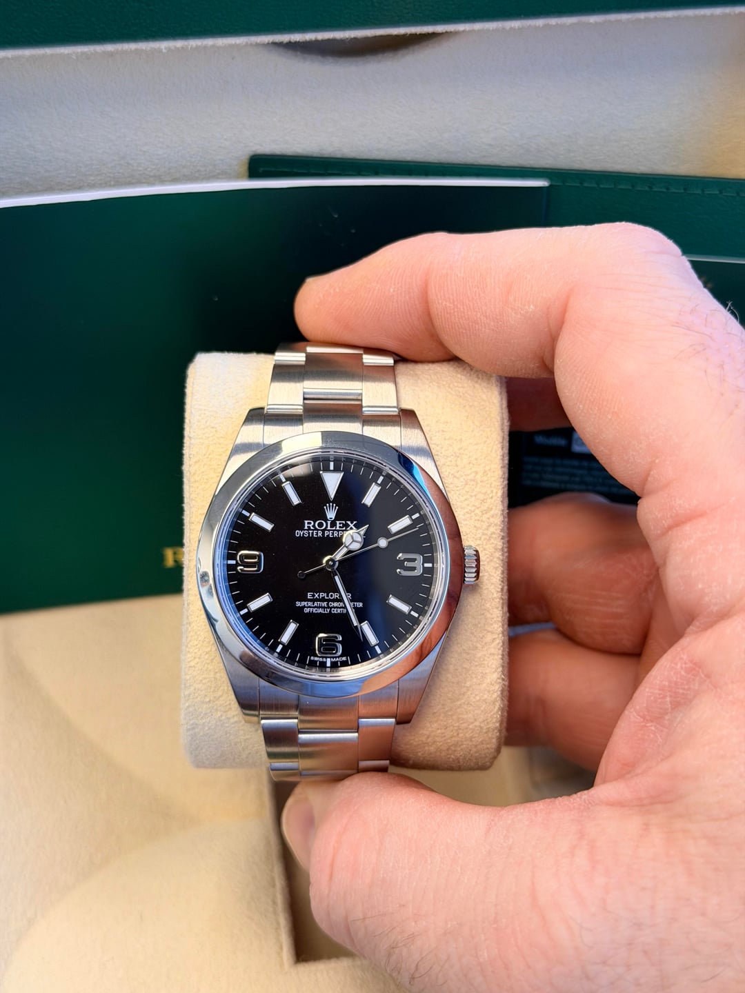 FS: Rolex Explorer 214270 (2015) – Mint – Full Set – 10.5 Links Price: $7,600 shipped overnight Up for sale is a Rolex Explorer ref. 214270 from 2015 in mint condition, complete as a full set. This is a clean, classic Explorer setup—perfect daily wearer with that timeless 39mm Explorer profile and an Oyster bracelet that wears comfortably in any setting. The Details • Brand/Model: Rolex Explorer • Reference: 214270 • Year: 2015 • Condition: Mint (excellent overall presentation) • Bracelet: Oyster bracelet with 10.5 links • Crystal: Sapphire • Dial: Classic Explorer layout with luminous markers and hands • Case Size: 39mm (Explorer 214270) What’s Included (Full Set) • Rolex Explorer 214270 watch • Box + outer box • Warranty card (dated 2015) • Booklets / manuals • Hang tags (if applicable) • Full set contents as provided