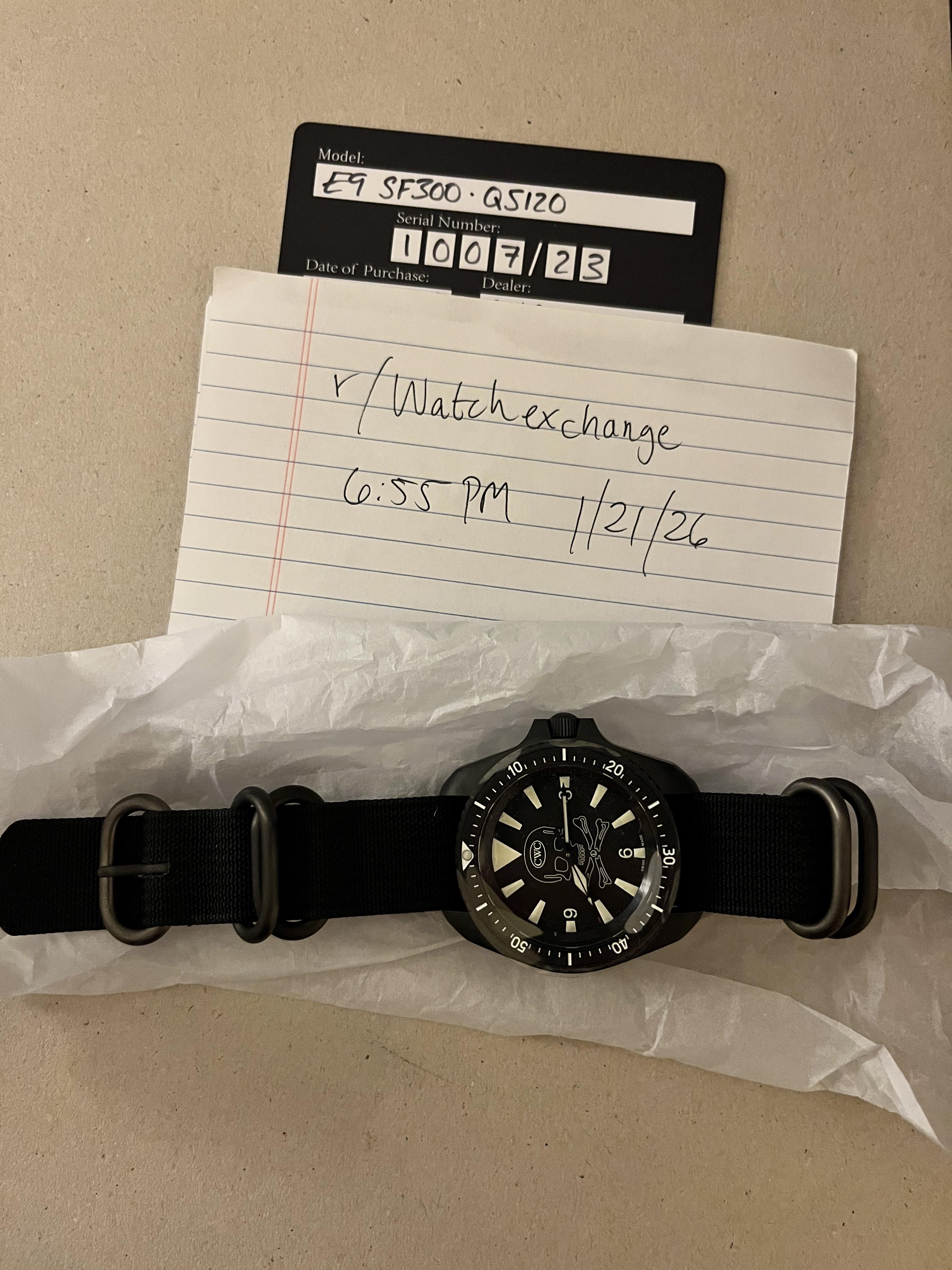 For sale is my CWC E9 SF300 QS120 quartz diver. Condition: UNWORN. Purchased new direct from Cabot Watch Company. Never worn, no marks, no sizing, no wrist time. Includes: • Watch head on original black CWC NATO • Warranty/info card (dated) • Full kit as received from CWC Price: $960 shipped CONUS Payment: PayPal Goods & Services Shipping: USPS Priority, tracking provided within 24 hours Location: USA Happy to answer questions or provide additional photos. Not interested in trades at this time.