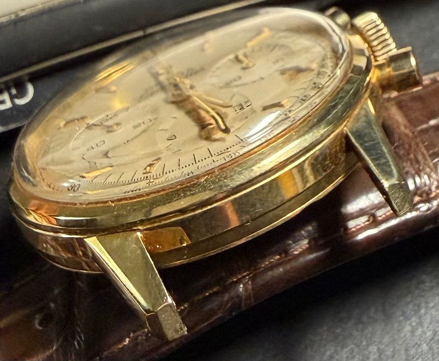 Super rare watch with a historic movement. You will rarely come across one this nice and more importantly....ORIGINAL. No box or papers. Just the watch. Will include the aftermarket brown alligator strap and clasp. Do have/will include a vintage Omega gold buckle but am unsure if it's original or not.