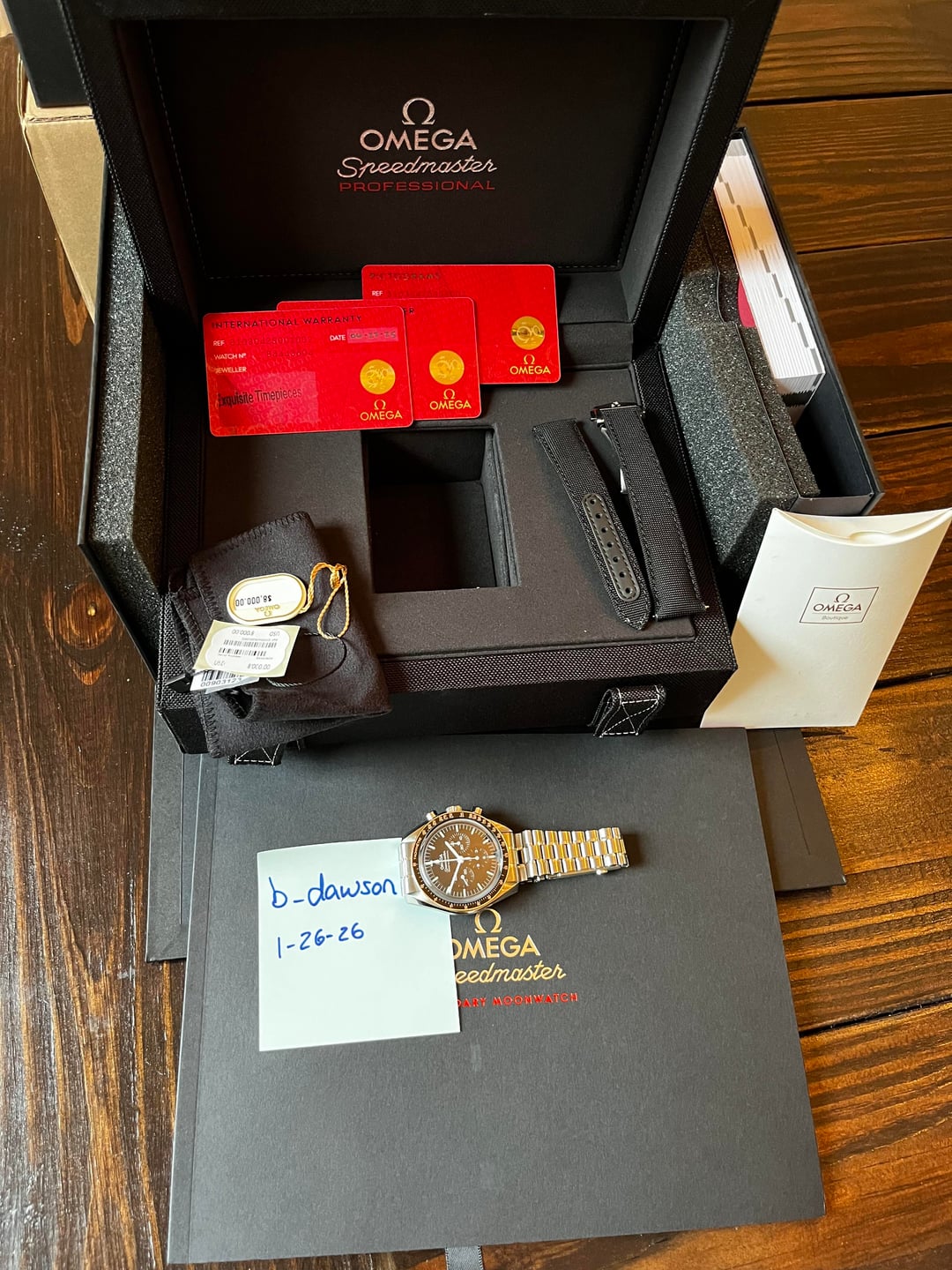 Selling mint condition full kit Omega Speedmaster sapphire AD purchase 6/25 - comes with a new omega sailcloth and deployment clasp making it the prefect kit for the Speedmaster . Happy to jump on a video call or send additional pics upon request. Asking $6650 +📦 OBRO Zelle or PayPal FF - shipping from Charleston, Sc