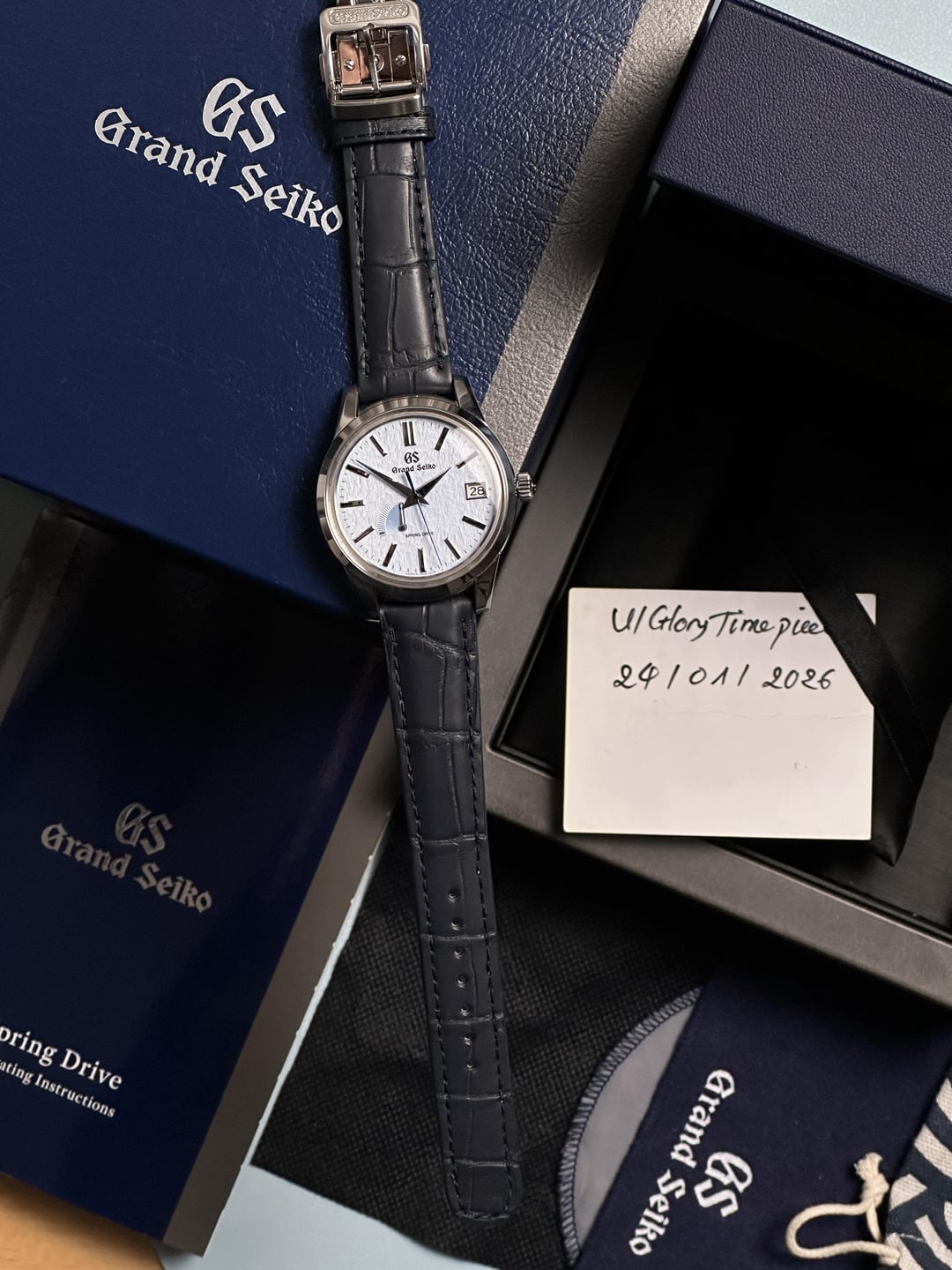 Hello, If you’ve been waiting for the right Grand Seiko to add to your collection or to start your journey this is it. Up for sale is recent 02/2025 Grand Seiko SBGA407 “Skyflake”, complete full set, in mint condition. This iconic reference blends Grand Seiko’s signature hand-finished casework with the mesmerizing Spring Drive movement—offering quartz accuracy with a mechanical soul. The “Skyflake” is a modern classic. Its dial is inspired by the snow-covered mountains of Shinshu, where this timepiece is made. Lighter than its Snowflake sibling, the soft blue textured dial shifts beautifully in the light—like snow catching the morning sky. Price of this model has skyrocketed since last year. Very hard to find one in this condition really. \*\*\[TIMESTAMP\](https://i.imgur.com/yQMVMgD.jpeg)\*\* \*\*Condition:\*\* • Watch head is mint – no scuffs, dings, or marks. • Strap in brandnew, untouched, the GS clasp ís in very good condition. • Spring Drive movement is buttery smooth and keeps impeccable time. \*\*Full Set Includes:\*\* • Inner and outer Grand Seiko boxes, rice paper. • Booklet • Warranty card dated 2/12/2022 – 5 years coverage until 2027 \--- Price: \*\*$4,450\*\* – shipped fully insured, tariff covered via UPS (4–5 business days). No trades. Payment: • PayPal Friends & Family preferred • Goods & Services accepted (+4.6%) Bankwire available \--- Questions or need more pics? Shoot me a message—happy to chat. Feel free to have a look at my Instagram : Watchtique