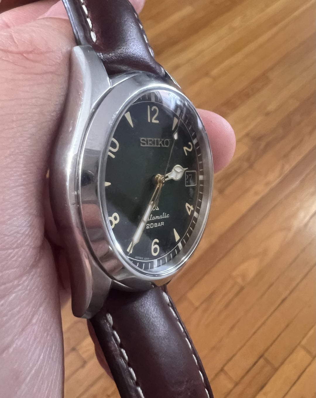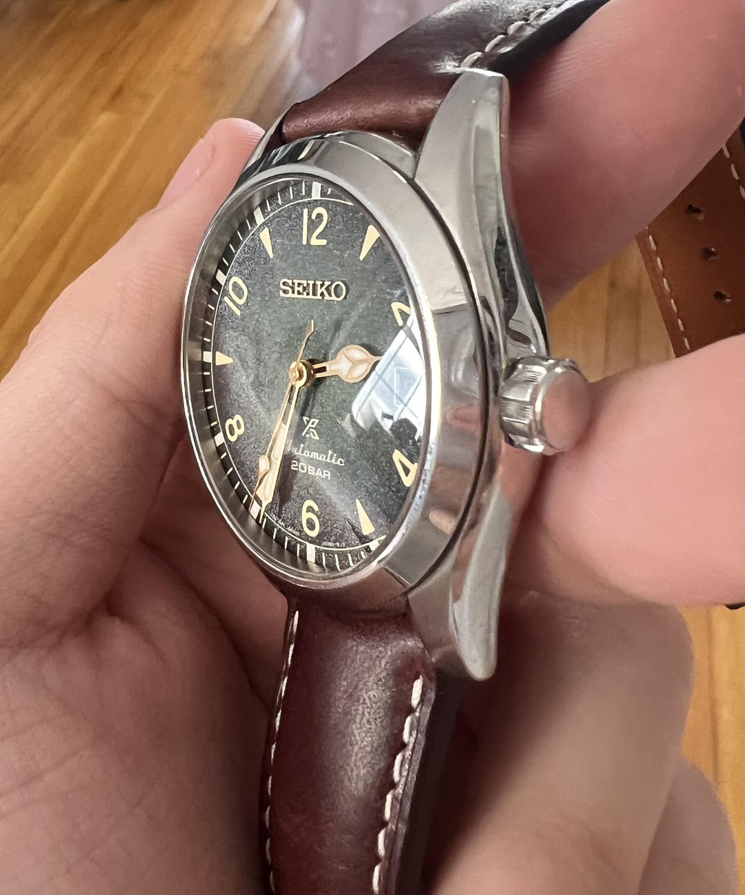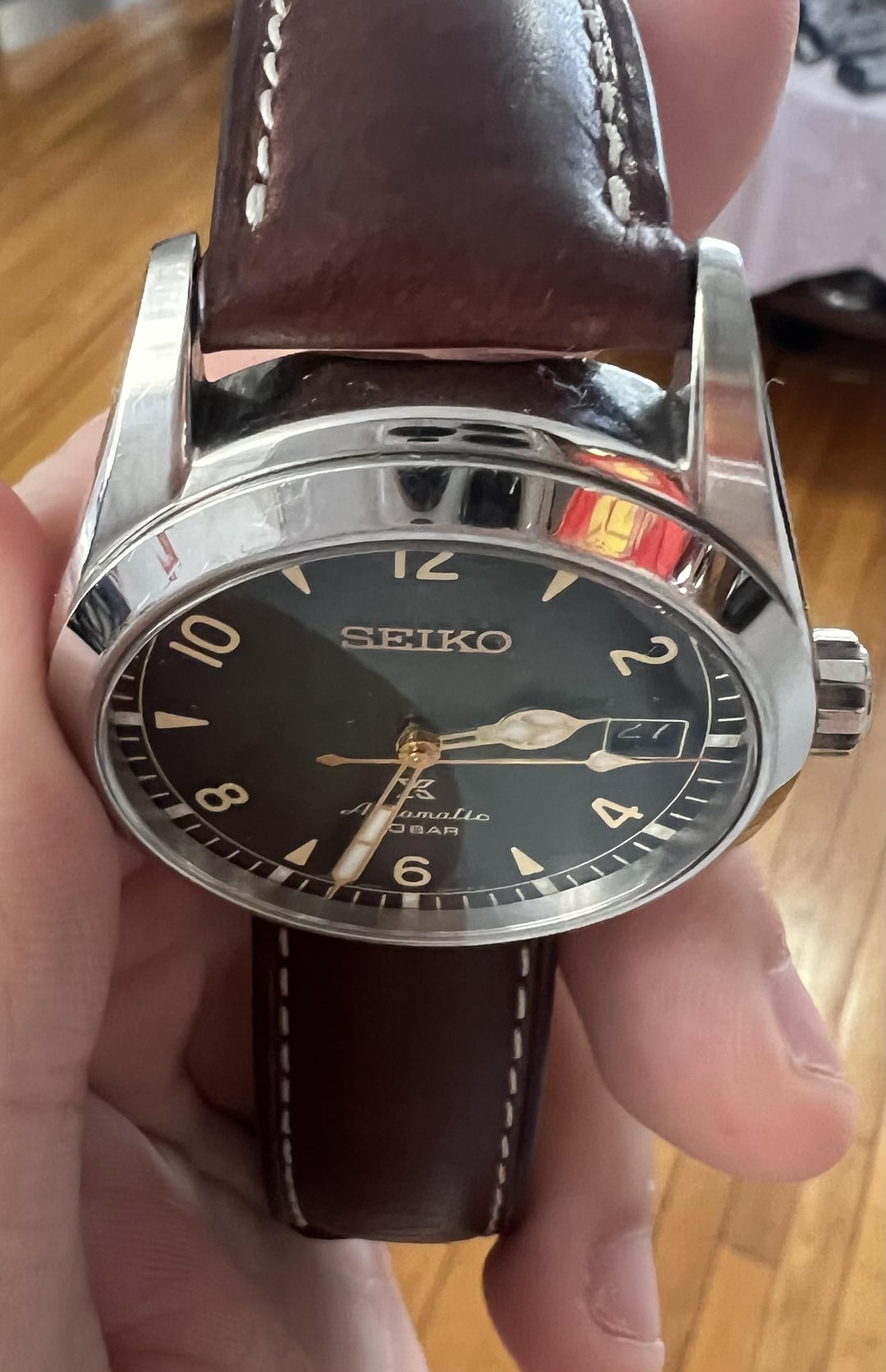 Hello hello r/Watchexchange Here I am selling my Seiko SPB155 "Baby Alpinist" I'm looking for 415$ (or roughly 400 + shipping, if you want to use your own shipping services that may be cheaper). Payment can be done by Zelle, Paypal F/F or Paypal G/S (granted you pay fees and only if you are established.) CONUS only please I'm pricing this below market as it's in good condition (but not excellent), bought in Nov 2020. There's a good amount of hairline scratches on the OEM bracelet which I will include. However I will also throw in the Tuns leather strap pictured on the watch. Perfect for any buyers who want the leather strap or will look to buy the Uncle Seiko bracelet in the future. In terms of performance, it runs well and I counted about a 10-15 second lost after a 24 hour period given the average performance of 6R35 movement. Otherwise, works perfect! I can provide more pictures, facetime, etc if you'd like. Feel free to PM me.