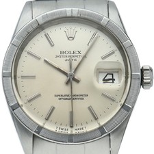 | Rolex Oyster Perpetual Date 1501 Engine Turned Bezel Silver Auto 34mm Watch timepiece-titans (953) |