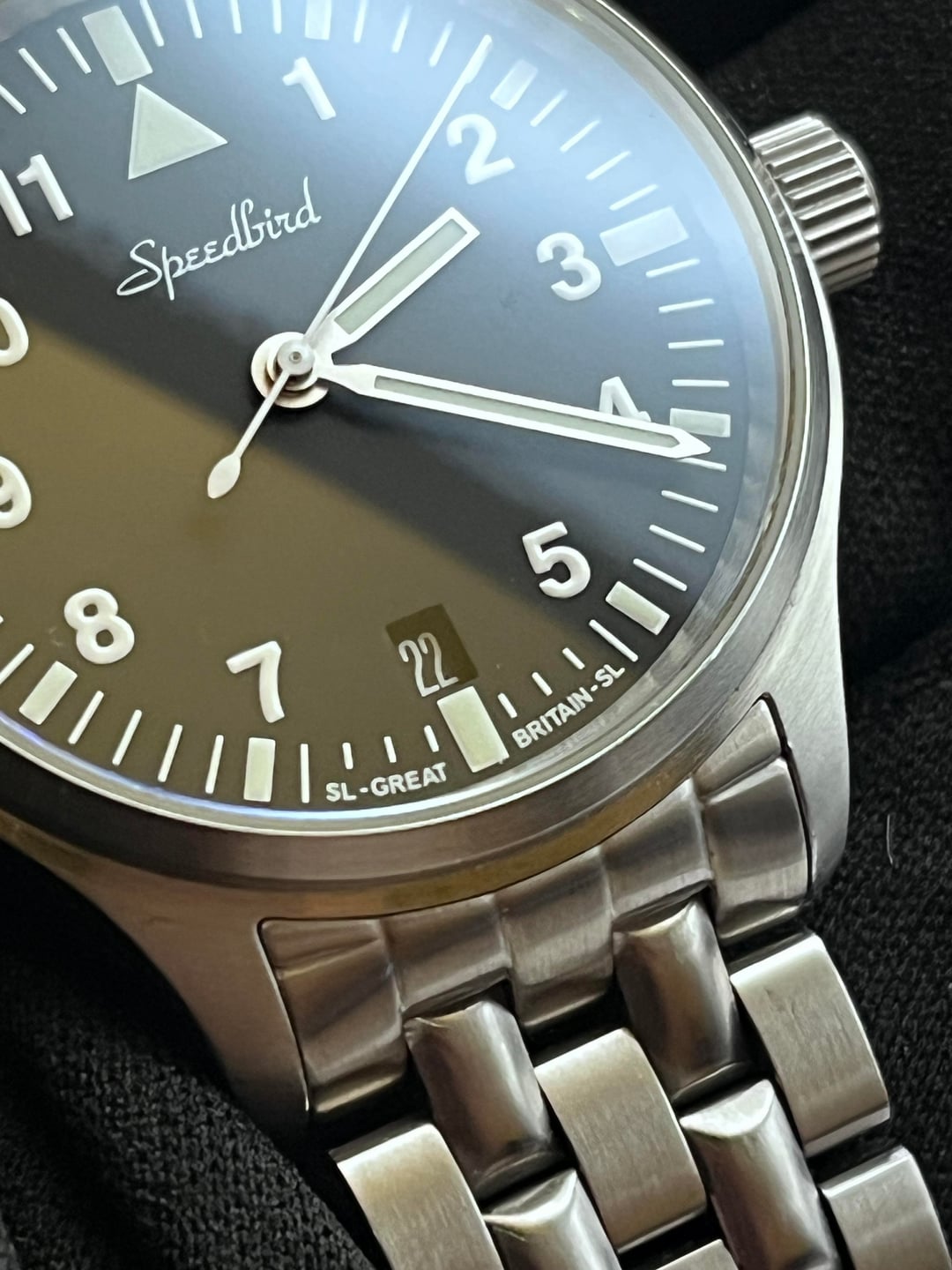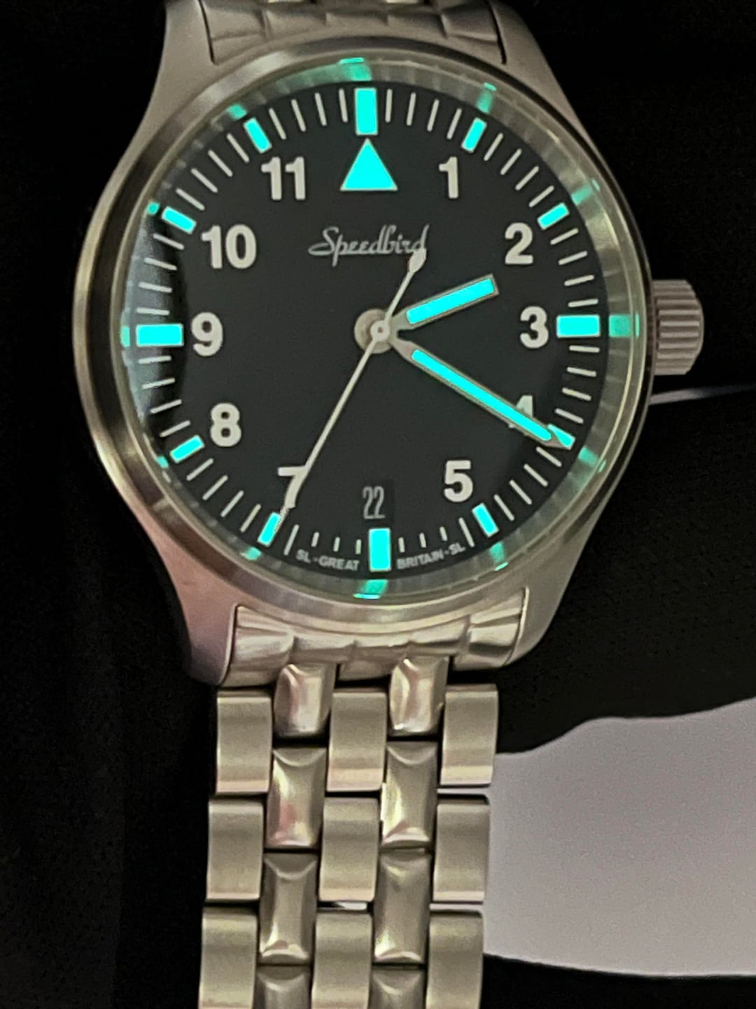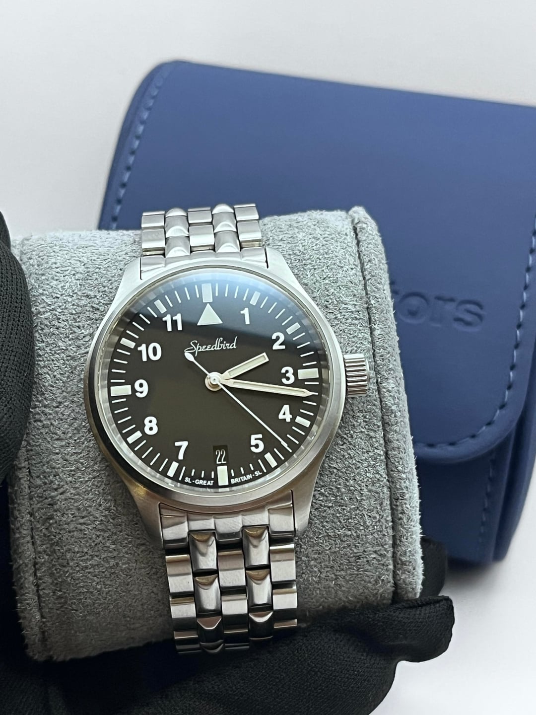 Hello Watchex, For sale is the excellent condition Baby Speedbird III. It comes full kit with manual, watch cloth, enough spare links to size to Sasquatch, and a beautiful leather watch roll. It’s super hard to find any blemishes if any at all. Very nice example of this watch. The movement is running super smoothly and very strong. Price: $409 Shipping: $10 USPS priority shipping anywhere in the US, insurance and other options are responsibility of buyer. Shipping from Central FL and watches are always packed with love and care. Payments accepted: Zelle is highly preferred. (PayPal FF, PayPal GS + 3.5%, Venmo, Apple Pay are reserved for forum members with enough registered transactions at my discretion) Please comment before sending a private message (PM). Happy to provide additional photos or a video call for serious buyers. Check my for profile for transaction history and other watches for sale. Thank you for your consideration, look forward to assisting you u/systemnew4959