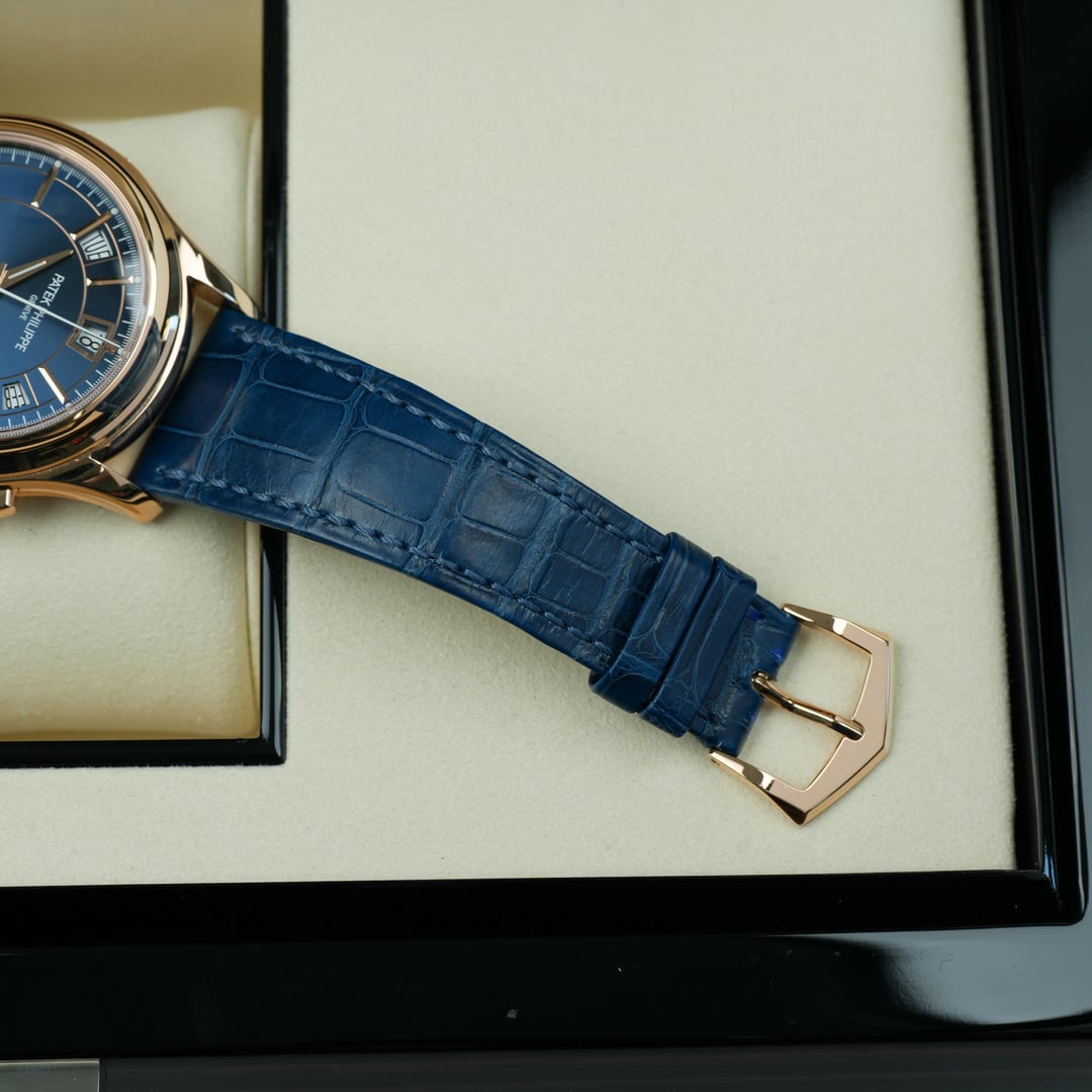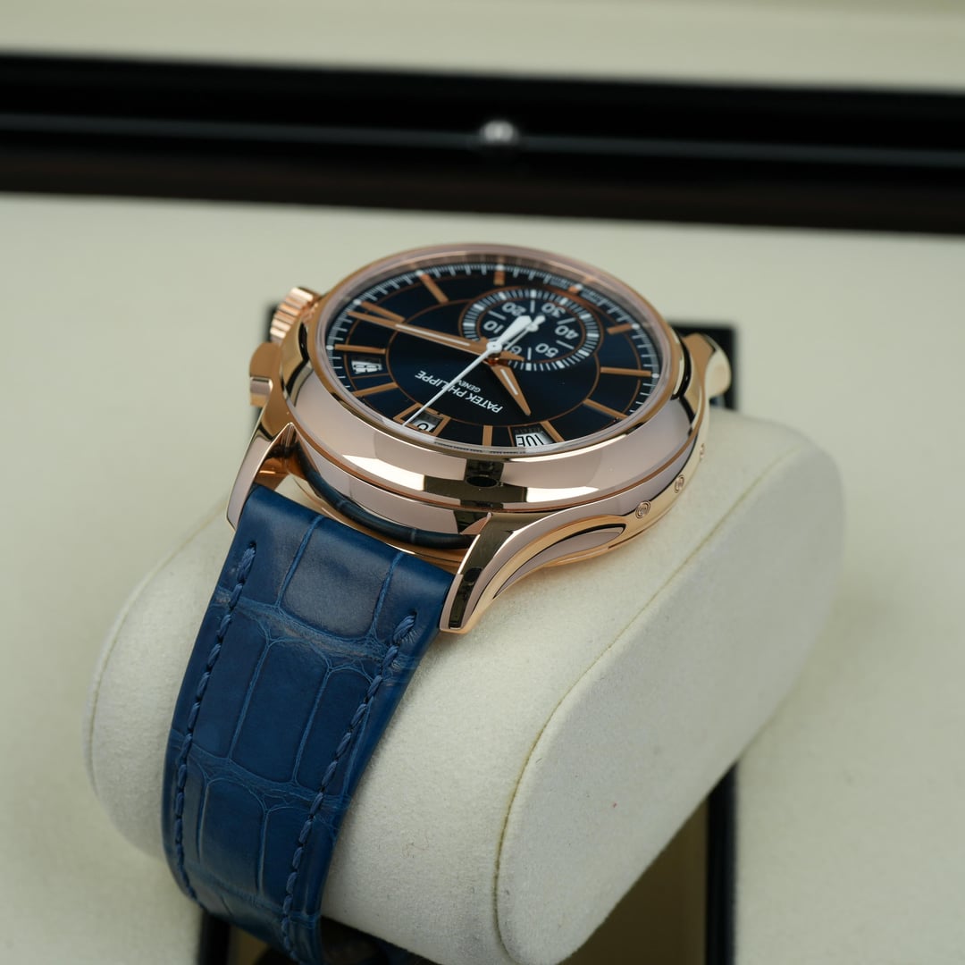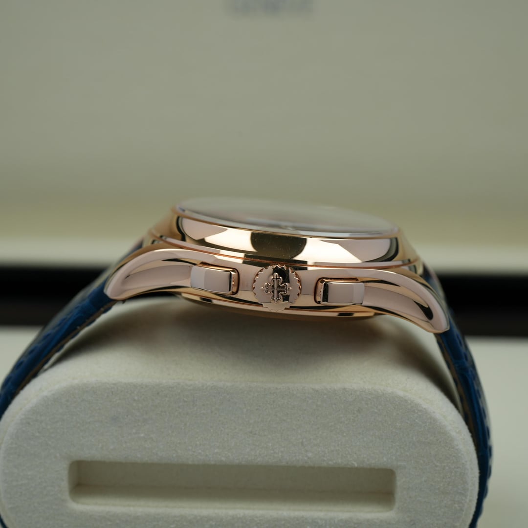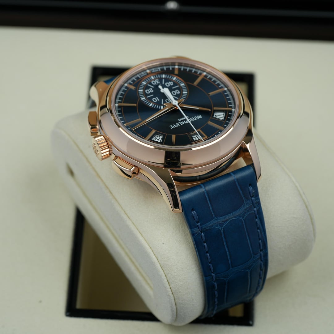 2025 Patek Philippe Complications Flyback Chronograph Annual Calendar 5905R-010 Complete Set Timestamp: [https://imgur.com/0n9lbvA](https://imgur.com/0n9lbvA) The Patek Philippe Annual Calendar Chronograph Ref. 5905R-010 represents one of the manufacture’s most compelling modern complications, seamlessly blending technical sophistication with contemporary elegance. Crafted in 18k rose gold, the 42mm case offers a confident yet refined presence on the wrist, perfectly balanced by Patek Philippe’s signature proportions and finishing. The watch features a striking sunburst blue dial, a highly sought-after configuration that elevates the model with depth, warmth, and modern appeal. Rose-gold applied hour markers and hands contrast beautifully against the dial, while the annual calendar display—showing day, date, and month—remains intuitively legible. A flyback chronograph complication is discreetly integrated, allowing instantaneous restart with a single press, underscoring the watch’s technical prowess. Powering the timepiece is the in-house automatic Caliber CH 28-520 QA 24H, visible through the sapphire caseback. Watch comes a complete set with Inner/Outer box, Booklet, Certificate of Origin, Pusher. Watch is overall in mint condition. Please look at my pictures as I like to fully represent the exact condition of the watch through my photography. **Offered at $74,999 shipped in US or OBO.** Payments accepted: Wire or Direct Bank Transfer (Bank of America). Shipping is always FedEx/UPS overnight, fully insured. I am an avid enthusiast and collector and am not affiliated with any watch brand I post. **Always open to trades or purchases! Looking for Audemars Piguet, Rolex, Patek Philippe, F.P. Journe, Vacheron Constantin, and other luxury brands.** I guarantee every watch I sell to be 100% authentic. Follow me on IG: JJ\_Timepiece\_Co Call or text (941) 800-3931