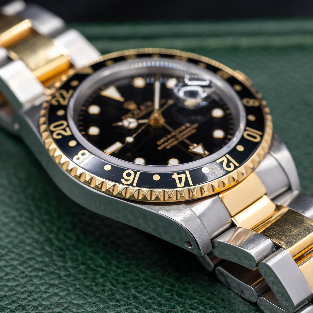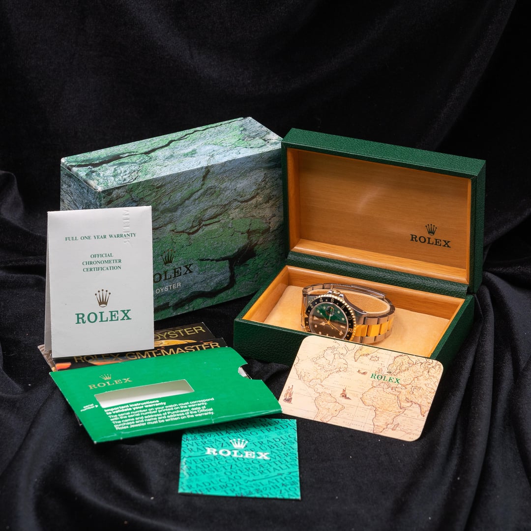 Up for sale here is an excellent example of a pre-ceramic Rolex GMT Master II- complete as a full set! Ref. 16713. As is true with all vintage and neo-vintage pieces, condition is of utmost importance. This piece is in very good condition, with minimal signs of polish, and a tight bracelet. What I think is so interesting is that although the watch was manufactured in 1991, the papers indicate that it was sold in 1994! A time when the Rolex market was very different than it is now! Comes as a full set as seen.  Asking price is $11,950. **All watches sold by us come with a 1 year warranty on movement, case, and bracelet functionality.** We have been trading luxury timepieces since 2017 and operate out of the southeast United States. Accepted forms of payment are wire transfer, trades for other watches, or crypto +2%. Turn your digital coins and memes to IRL assets! After payment has been received, we ship out promptly using Fedex Priority Overnight, fully covered by a private insurance company. Packages are sent to a Fedex Office or Ship Center to be held for pickup. Armored carrier or personal delivery will be arranged for pieces valued over $150k. More pictures or video available on request! Plenty of references available, so deal with confidence! We pride ourselves on customer service, communication, and will do what you need to make this a comfortable transaction. Most brands and models of luxury timepiece are accepted on trade. Rolex, Audemars Piguet, Patek Phillipe, Richard Mille, Hublot, Panerai, Zenith, Breitling, Vacheron Constantin, F. P. Journe, A. Lange & Sohne, etc. I can do cash either way or multi-watch trades for the right deal! Check out our other listings on mechanical-art . com