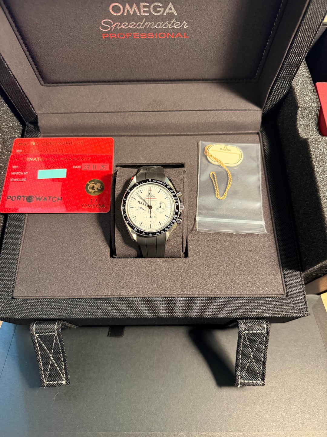 Hi watchexchange! Today I’m selling my BNIB Omega Speedster Professional 3861 White Lacquer dial on a black rubber strap. AD card is stamped on November 2025. Details: • Date: November 2025 • Reference: 310.30.42.50.05.001 • Movement: Master Chronometer Omega Cal. 3861 • Full set includes all boxes and papers, Omega hang tag, and black microfiber cloth. This Speedmaster comes in perfect 10/10 condition, not a single hairline or ding. The strap clasp and case bock stickers are both still on. I’d be happy to send additional pictures, updated timestamps, or hop on FaceTime to show you the watch. Whatever I can do to make you feel more comfortable purchasing from me, just ask! MSRP is $8,700, my asking price is ~~$7,400~~ $7,200 + Shipping, OBO. Prefer Zelle or Paypal FF. [Timestamp](https://imgur.com/a/mQoH8wz)