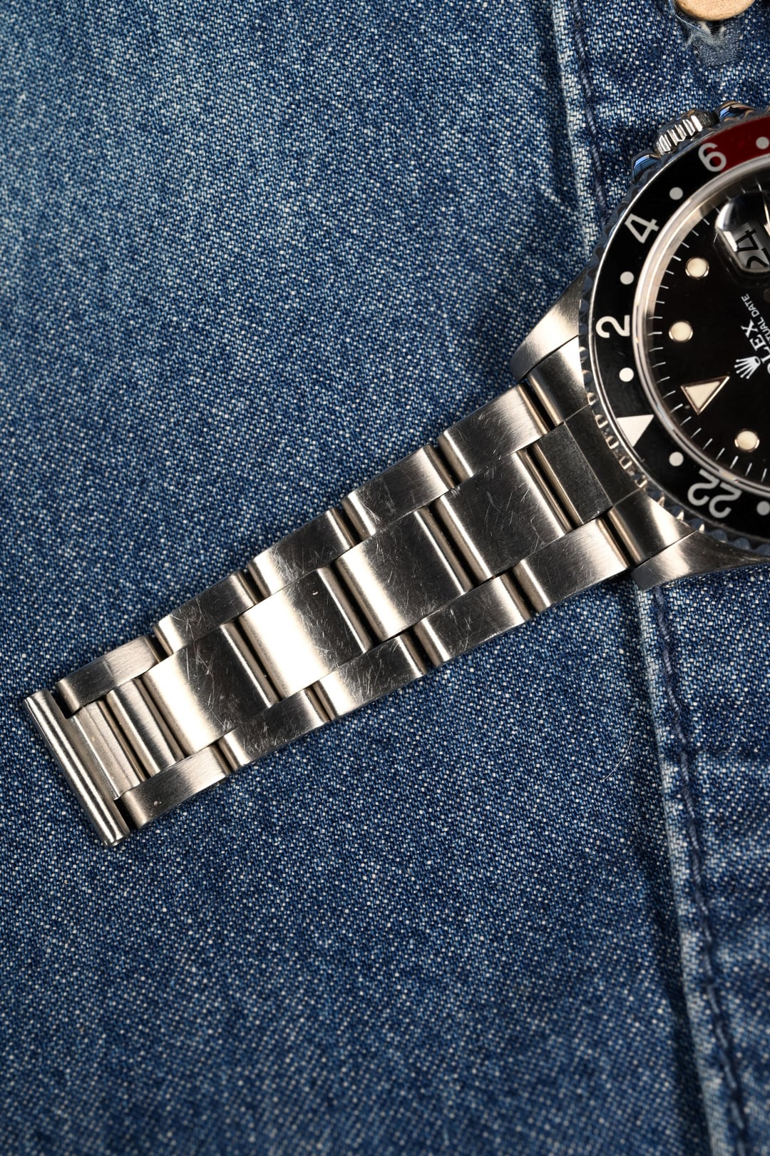 **ABOUT THIS WATCH:** **MANUFACTURER:** Rolex **MODEL:** GMT **REFERENCE:** 16700 **SERIAL:** A24xxxx **YEAR:** 1999 **DIAL:** We have, by Rolex standards, an uncommon dial for the 90's era - a swiss only dial. The swiss only dial signifies a transition from the use of tritium as the means for luminescent to luminova. The lume plots show some areas of darkening. The hands are just one shade lighter which is common for this period. **CASE:** The 40mm stainless steel case shows signs of a previous polish. The case overall presents with light wear from use. **BEZEL INSERT:** This watch comes with two bezel inserts - Coke and black. Both bezels exhibit light signs of wear overall. **MOVEMENT:** Rolex automatic self winding caliber 3175. Service history unknown. The watch winds, sets and runs. It was placed on a timegrapher which illustrated that the watch is keeping time within 1 second per day and has an amplitude of 347. The movement can be serviced for approximately $325 plus parts - if any are needed. If the watch is serviced it will come with a one year warranty dated from the completion of service. **BRACELET:** Comes on its original oyster bracelet with X clasp code correlating to year of production in 1999 matching the watch. It presents with light signs of wear as evidenced in the photographs. It fits a wrist approximately up to 7.25 inches. More links can be sourced at cost. Simply inquire. **ACCESSORIES:** An original Rolex service pouch. **BOX/PAPERS:** None. **WARRANTY:** None unless serviced first. If serviced the watch will come with a one year warranted dated from the completion of service. **BANK WIRE PRICE:** $9,800 shipped. Time Stamp: In photos.